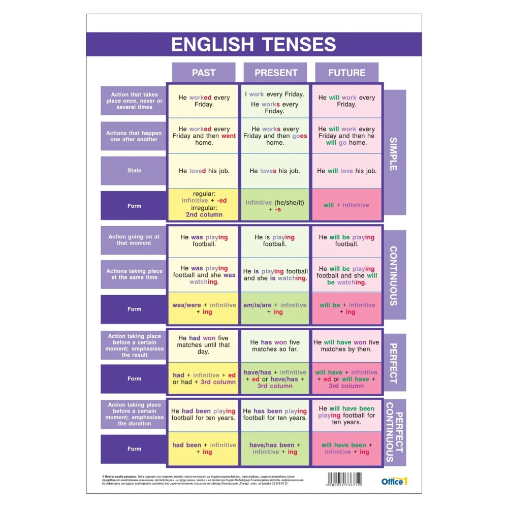 Office 1 Ученическо табло ''Времена в английския език'', A3