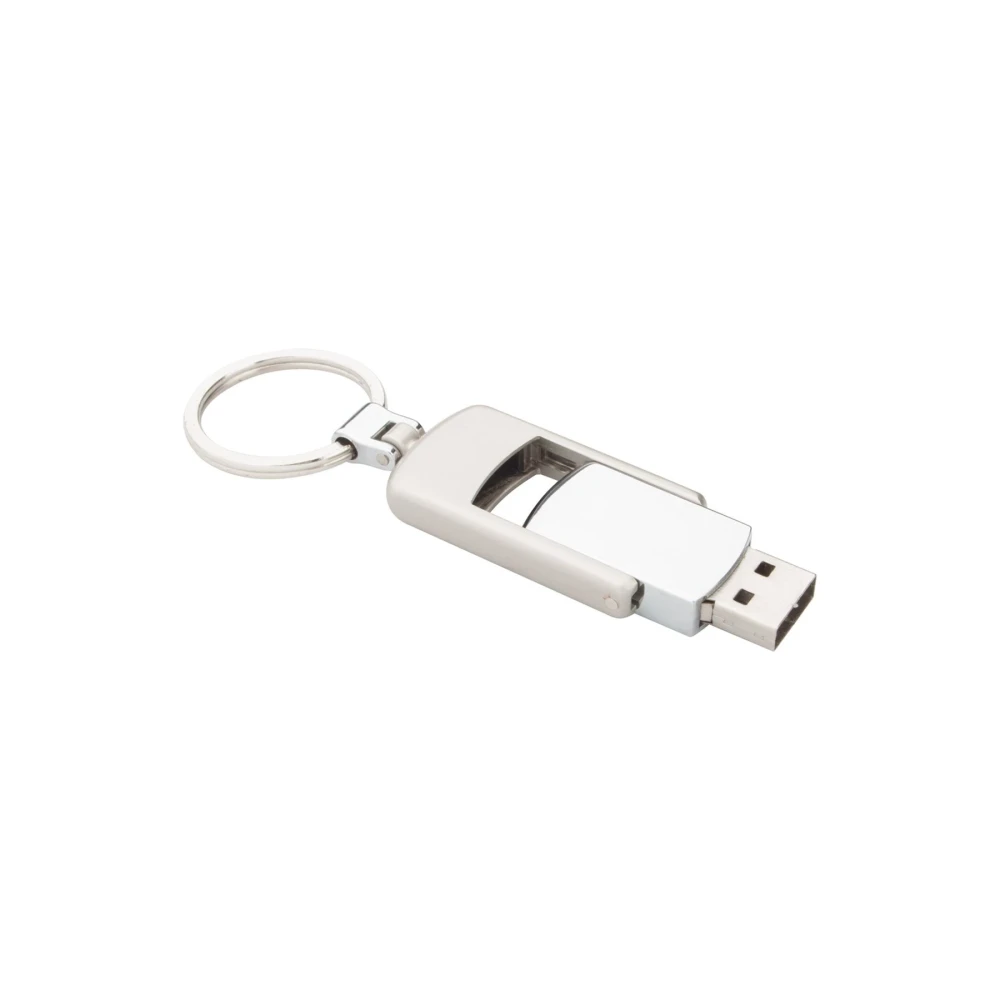 Сгъваема, метална USB флашка с памет и ключодържател.