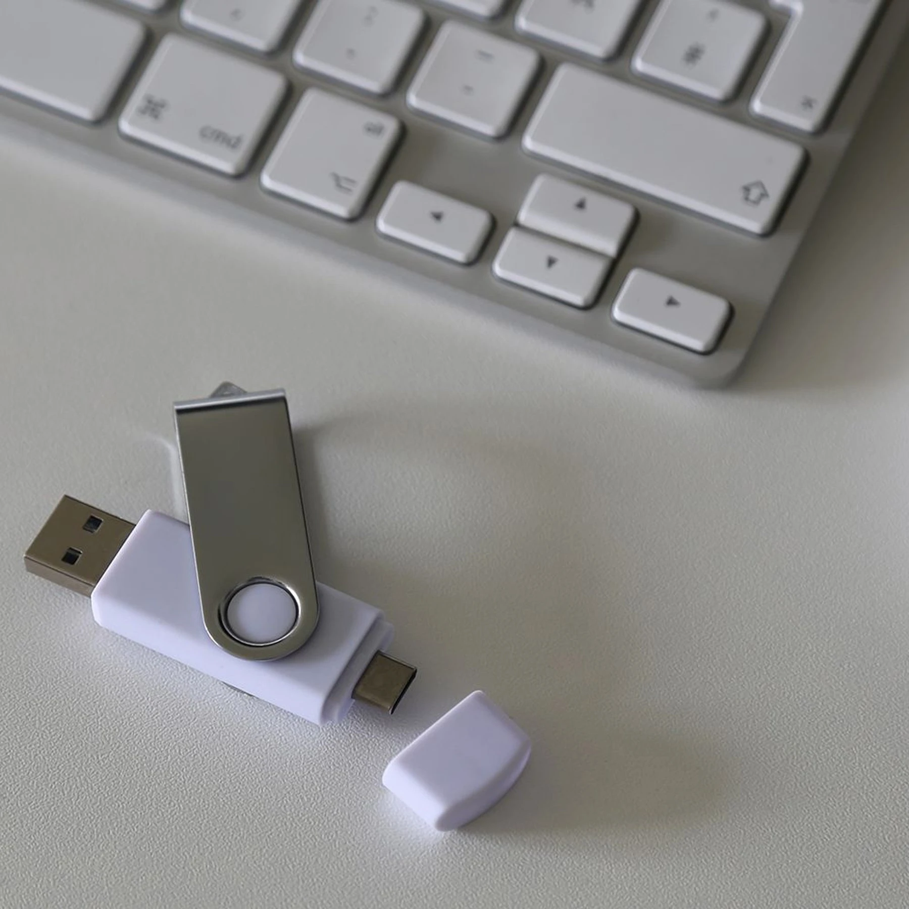 Двойна USB флаш памет с USB Type-A и USB Type-C. Здравата метална въртяща се дръжка позволява лесно отваряне или покриване.