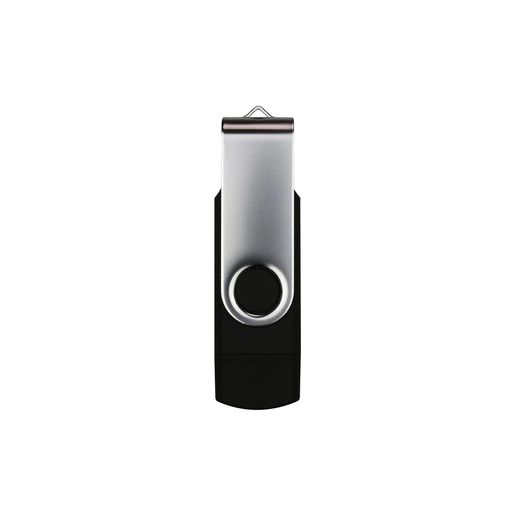 Двойна USB флаш памет с USB Type-A и USB Type-C. Здравата метална въртяща се дръжка позволява лесно отваряне или покриване.