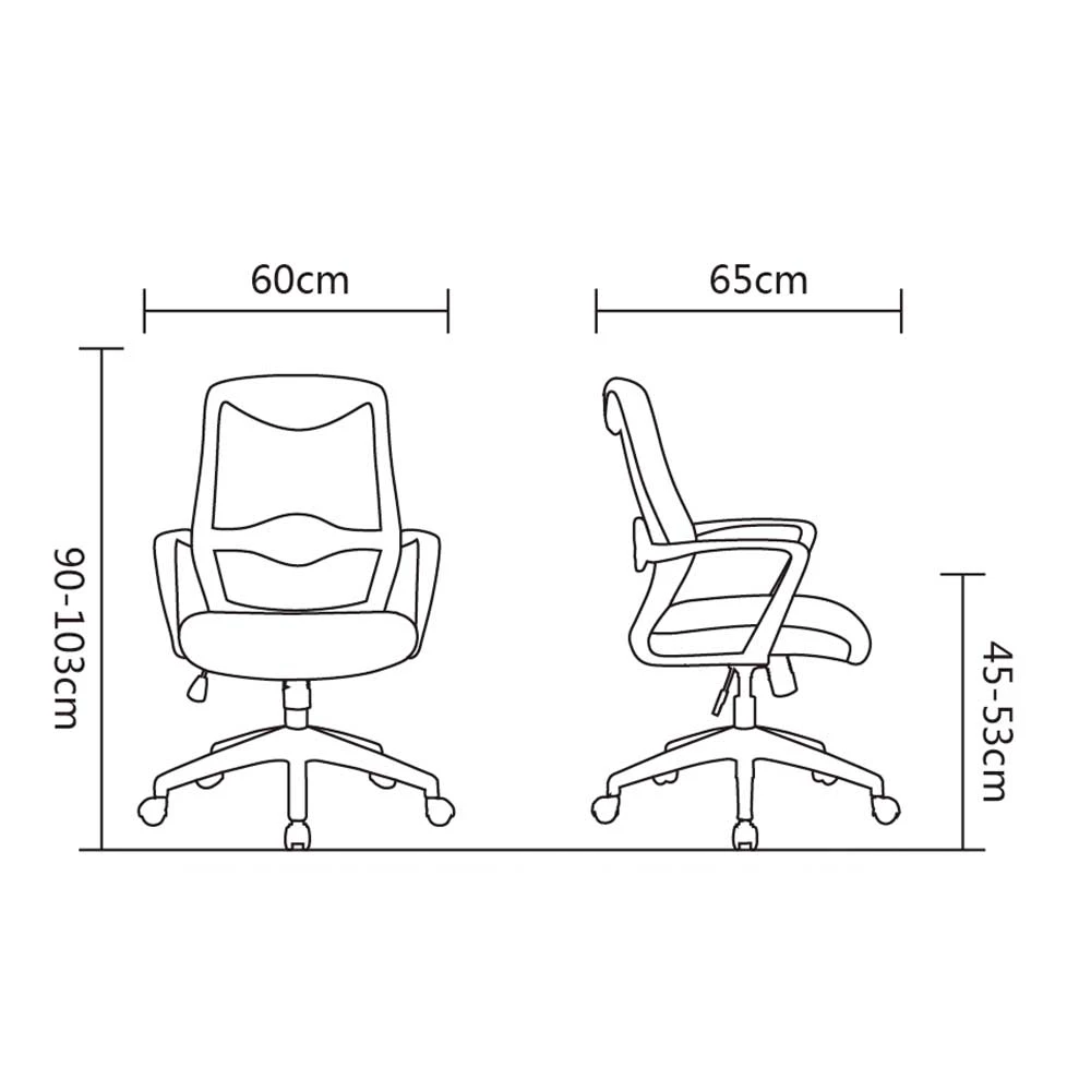 Седалката, изработена от висококачествена пяна е тапицирана с текстилна дамаска за чудесен завършек на визията му, а облегалката с лумбална форма е изработена от дишаща материя тип „меш“, която позволява на въздуха да циркулира свободно и елиминира вероятността от изпотяване и неприятна миризма.