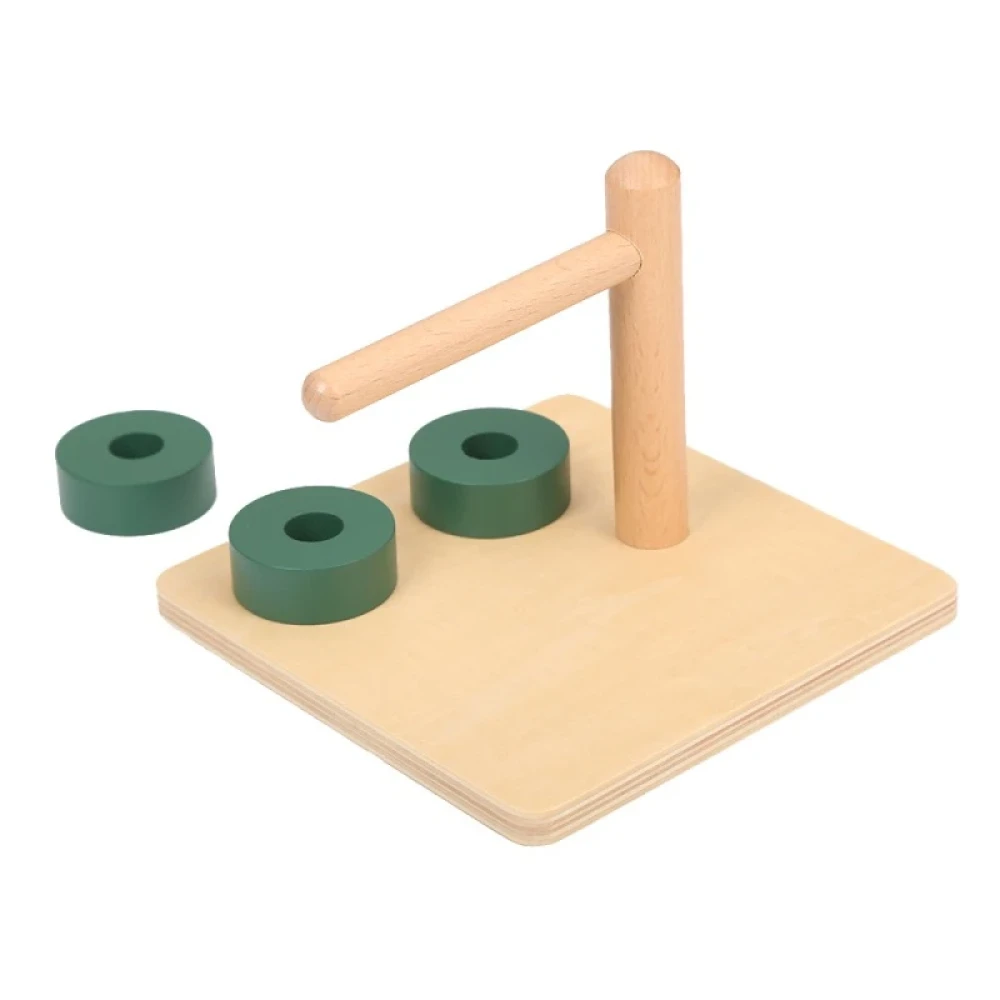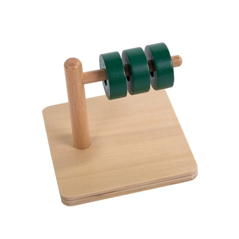 Монтесори материал, който се състои от дървена основа, на която има забита вертикална ос с прикрепена хоризонтална ос. Има три дървени диска, които детето трябва да постави на хоризонталната ос.