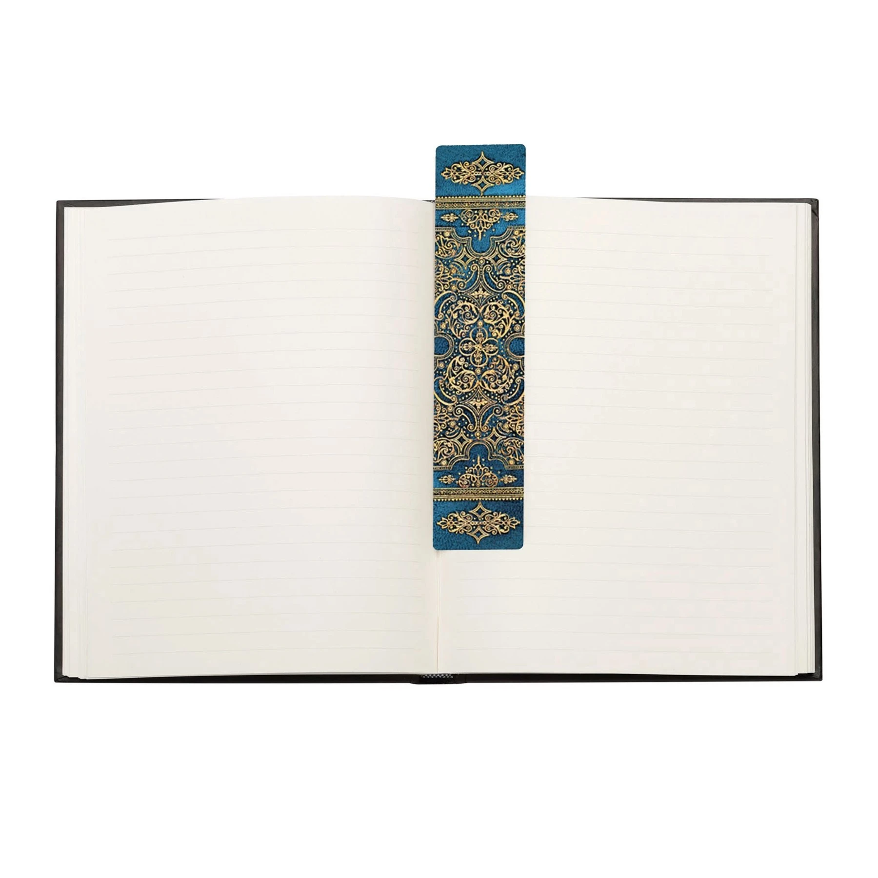 Месинговите и кралскосини тонове на корицата на този книгоразделител от Papeblanks носят средновековното усещане. Оригиналната книга, вдъхновила този дизайн, е изработена в Амстердам през 1715 г. Подвързията й е била направена от козя кожа със сложна златна украса, а вътре е събрана Oratio Dominica (Господнята молитва) на почти 150 езика и диалекта, съставена от английския придворен писател Джон Чембърлейн. Той е владеел 16 езика, а детайлите на този дизайн отразяват многообразието на култури, обединени в книгата му - Европа и Азия до Арабия, Персия, Сирия и Турция.
