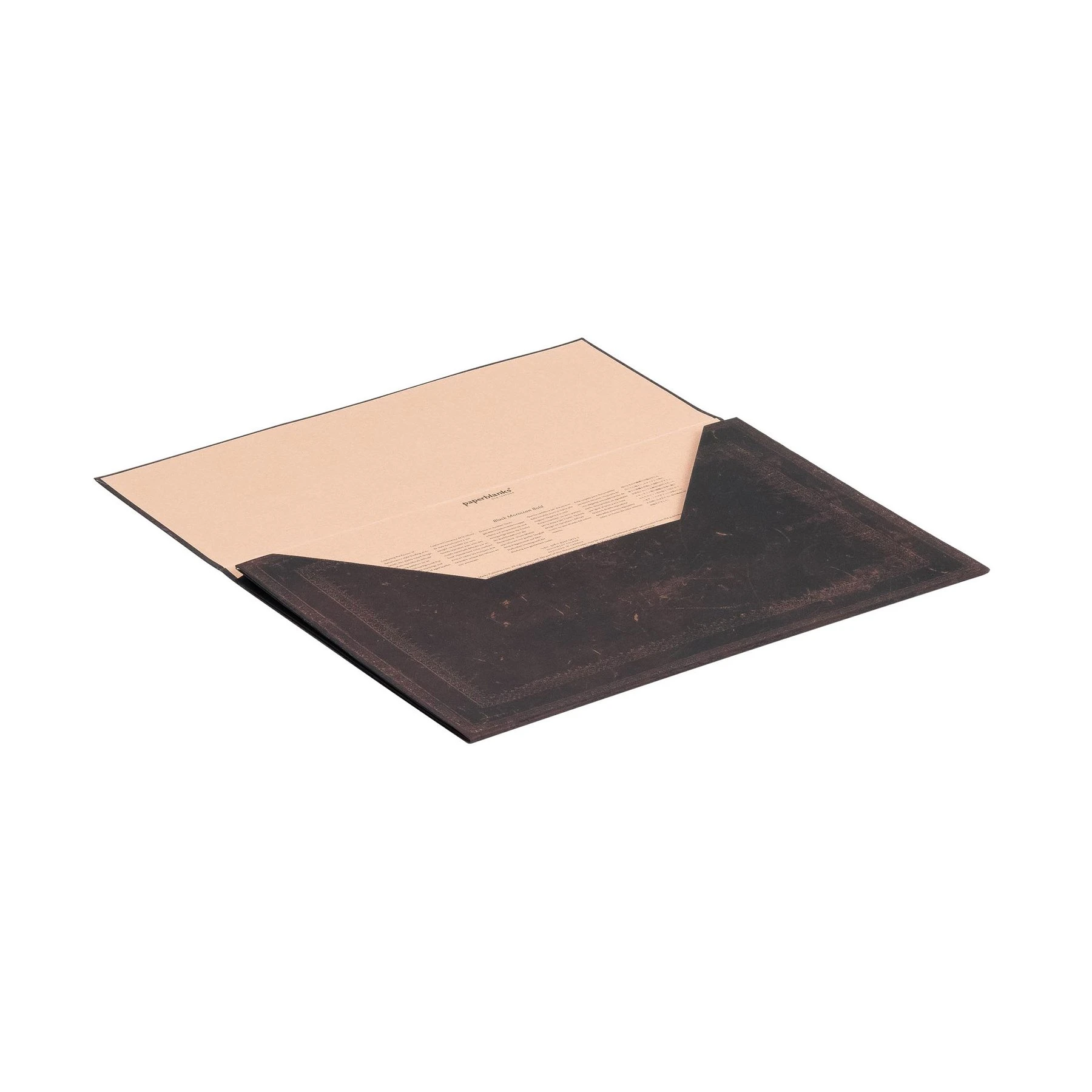 Мароканската кожа е гъвкав материал, който е бил високо ценен при изработката на луксозни подвързии на книги още от късния 16-ти век. Комбинацията между здравината на класическата кожа и нежните елементи на преден план вдъхновяват Paperblanks за папката за документи Black Moroccan. Характеристика на продукта: