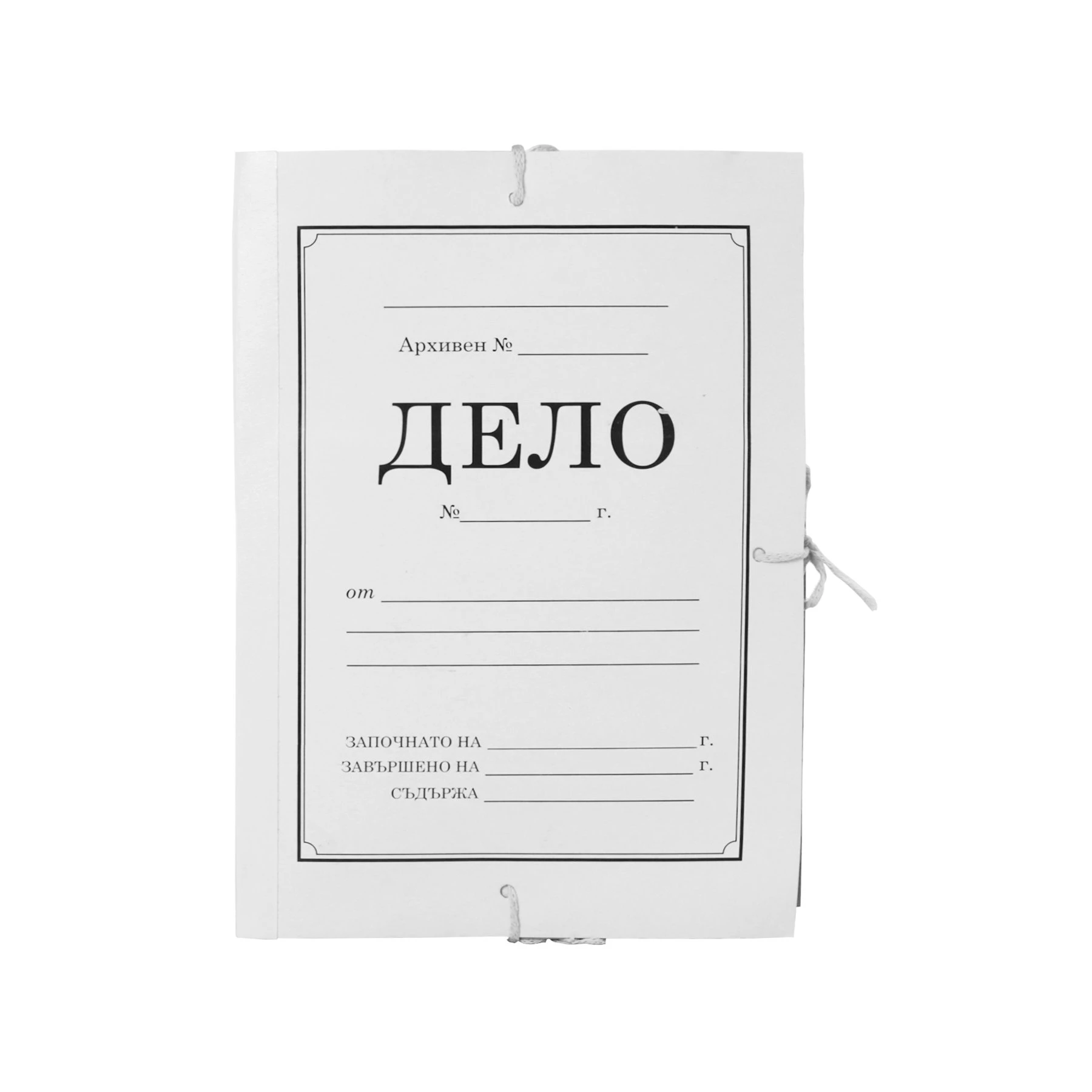 Папка ДЕЛО, произведена от пресован картон, с връзки и мек гръб от книговинил.