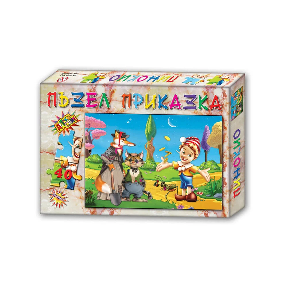 Занимателният пъзел „Пинокио“ е съставен от 40 елемента и е подходящ за деца над 3-годишна възраст.
