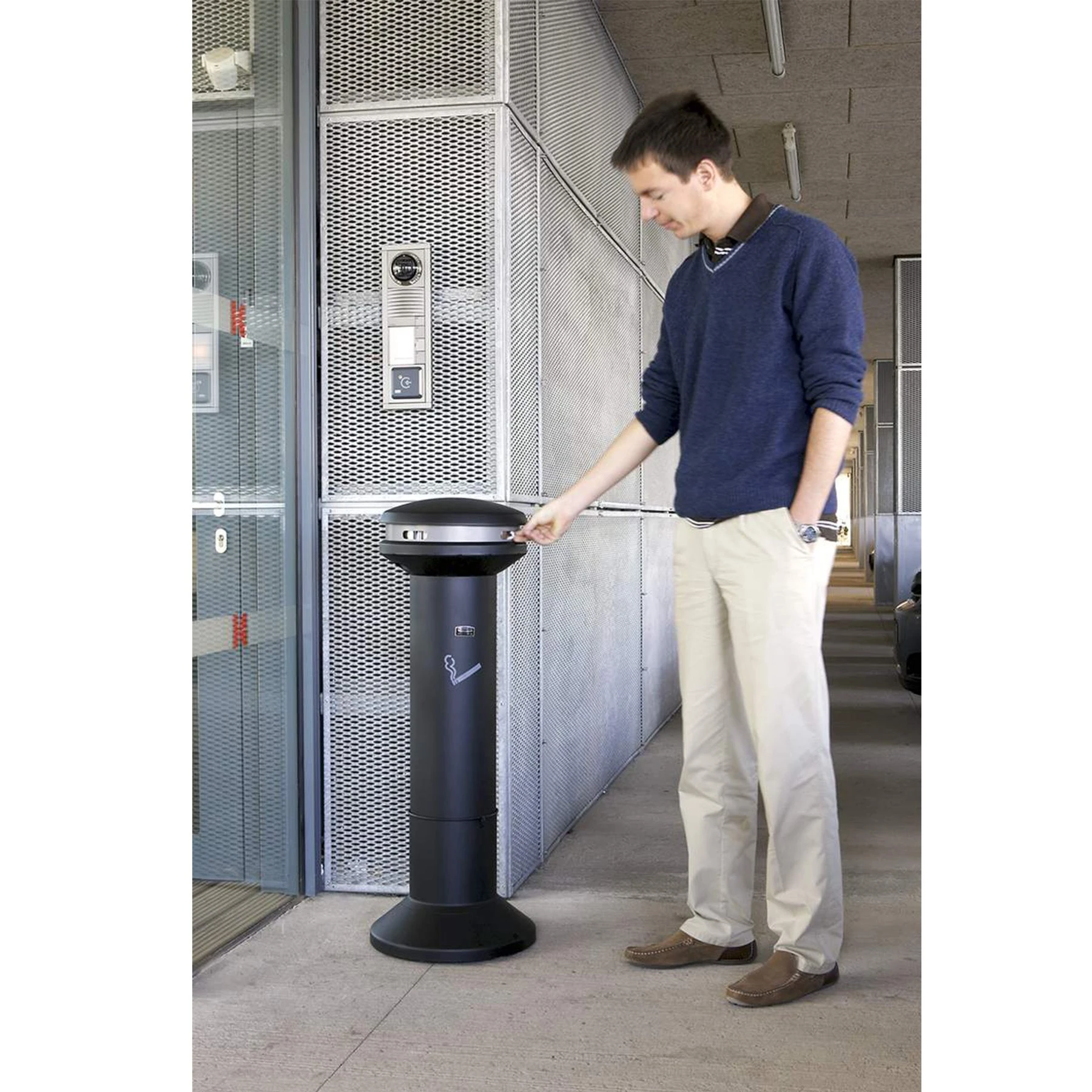 Пепелник с изтънчен стил и изцяло метална конструкция за привлекателно и ефикасно управление на отпадъците от пушенето.