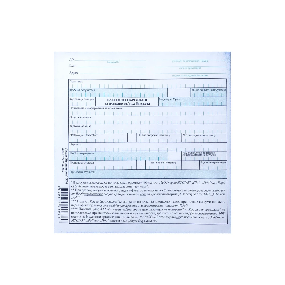 Платежно нареждане / вносна бележка, 100 листа