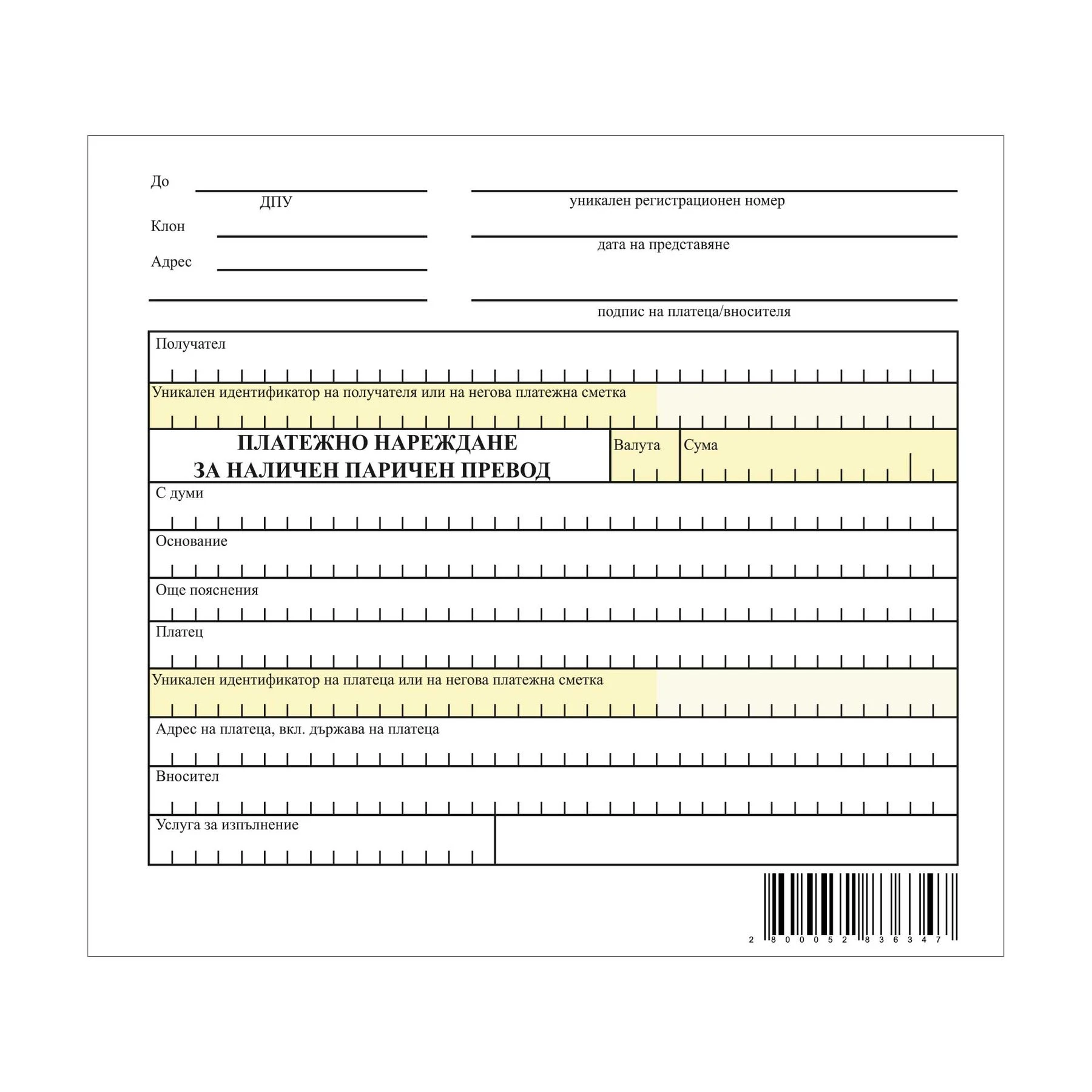 Платежно нареждане за наличен паричен превод