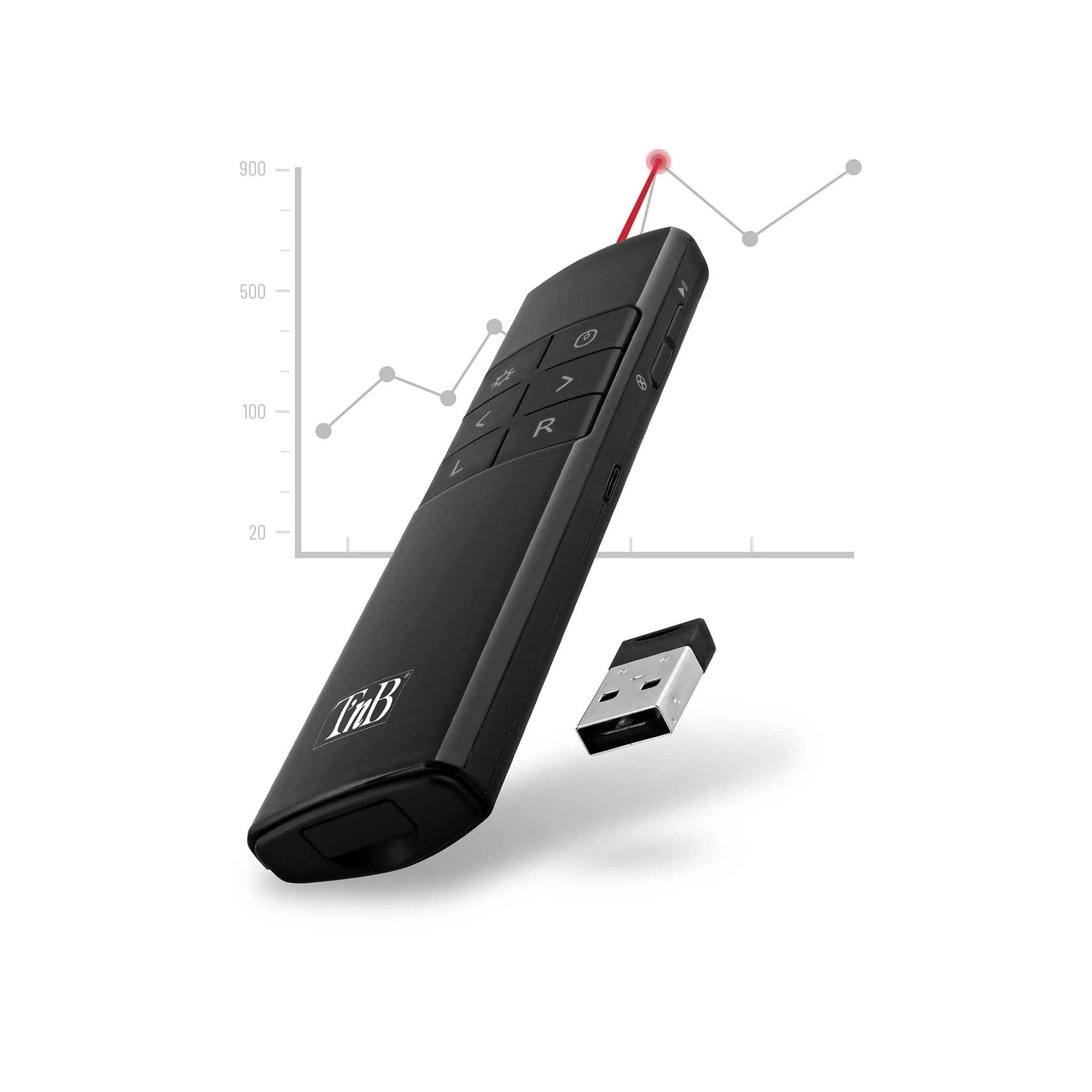 Показалка TNB Presenter, лазерна, USB Type-A, черна, обхват 10 m