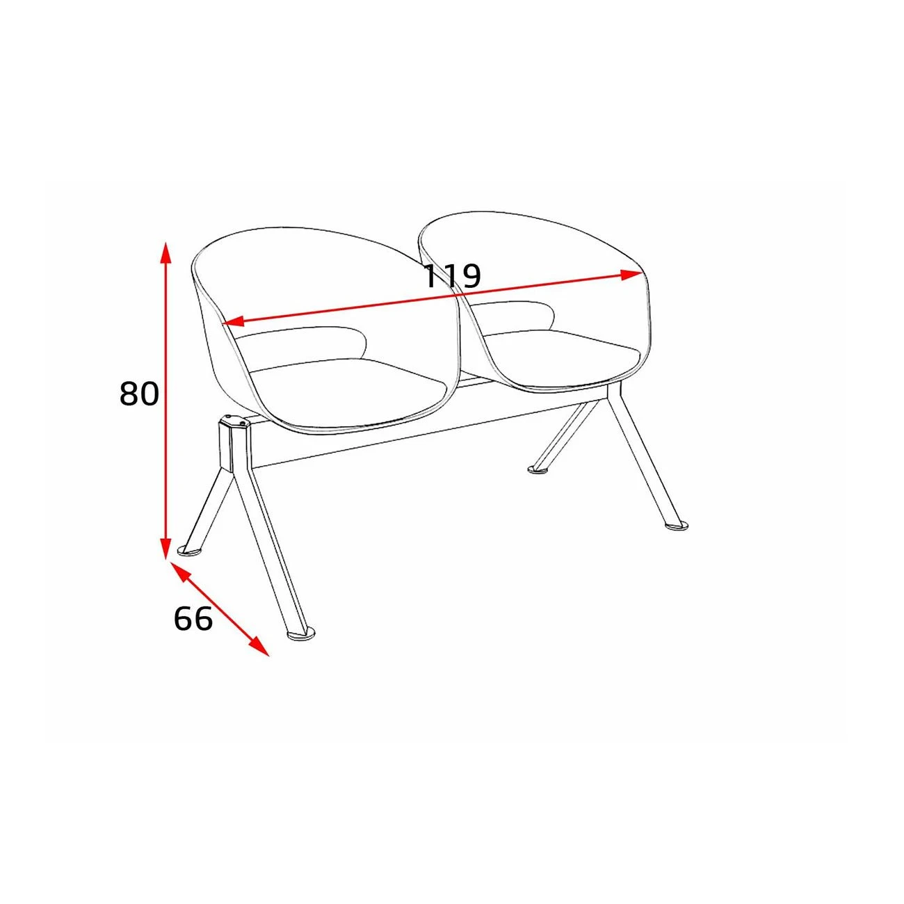 Посетителска пейка RFG Simon Black, с 2 места, полипропилен, метална основа