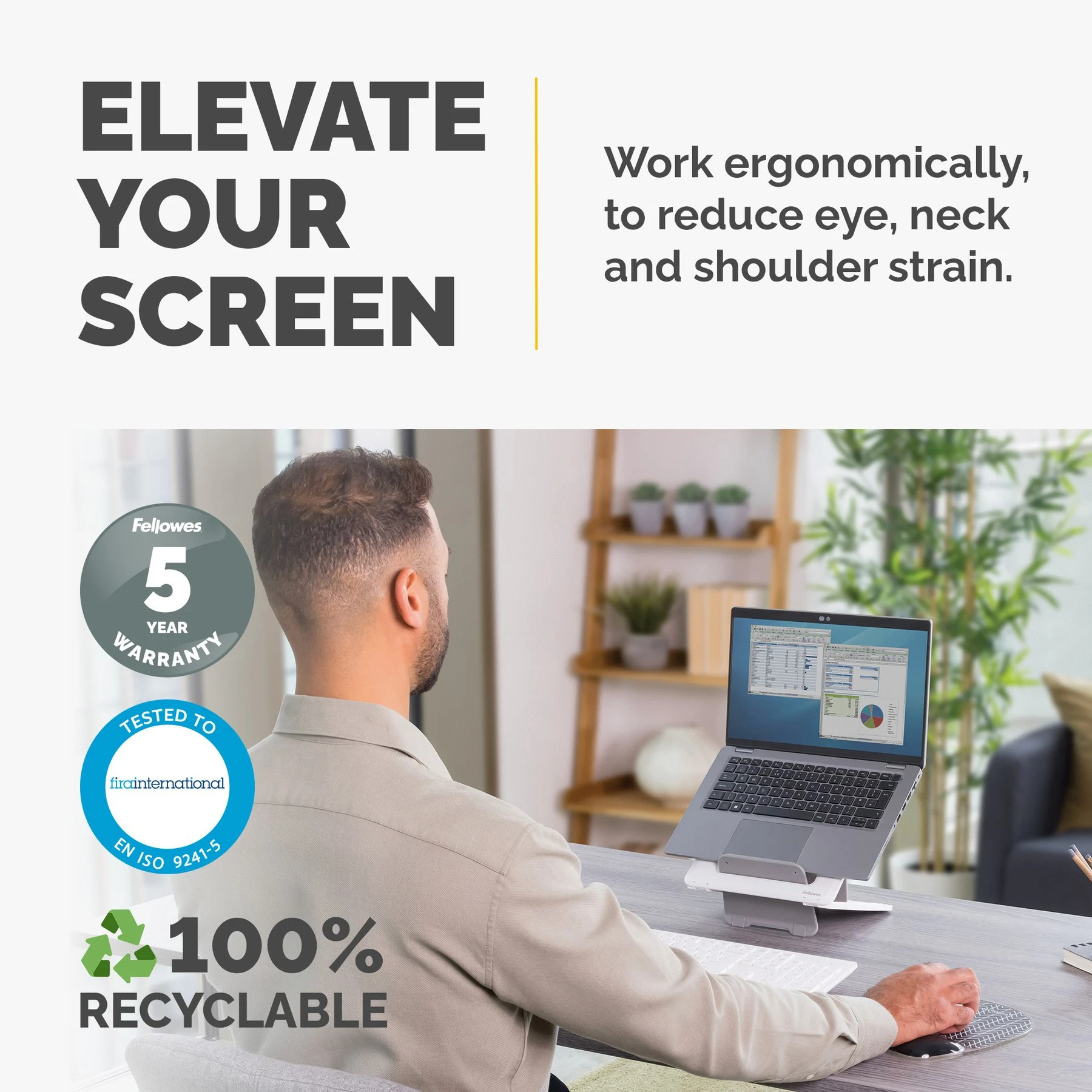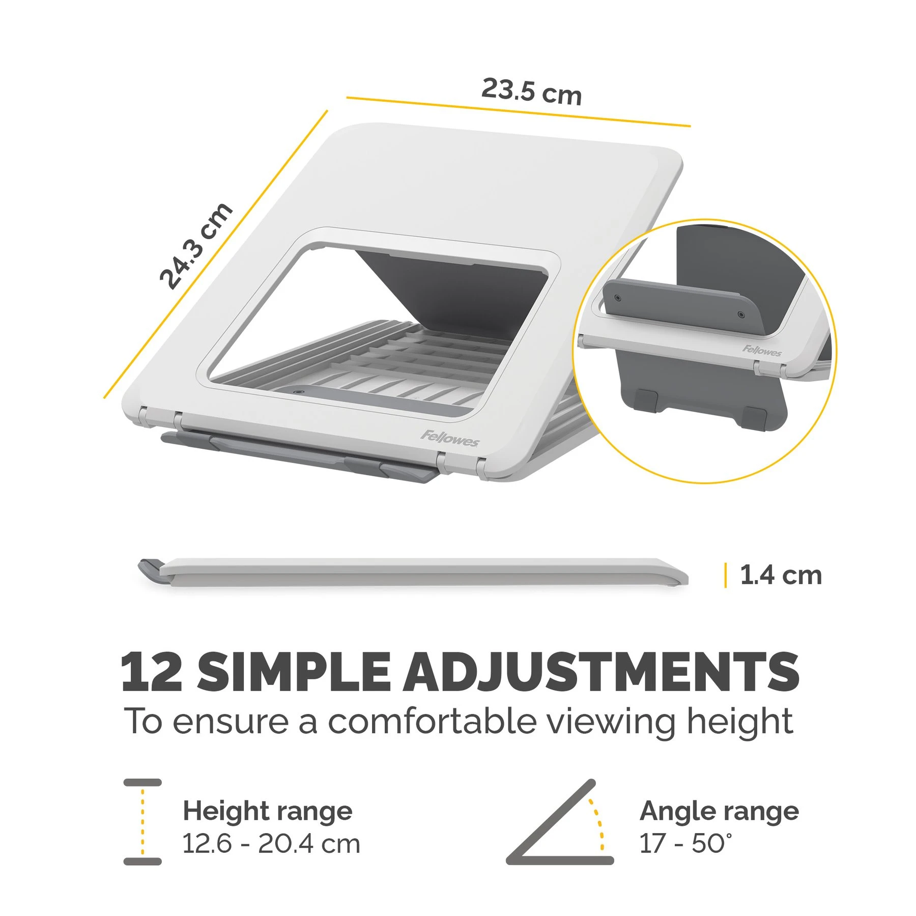Компактна, лека и преносима поставка за лаптоп, която се настройва и регулира лесно.