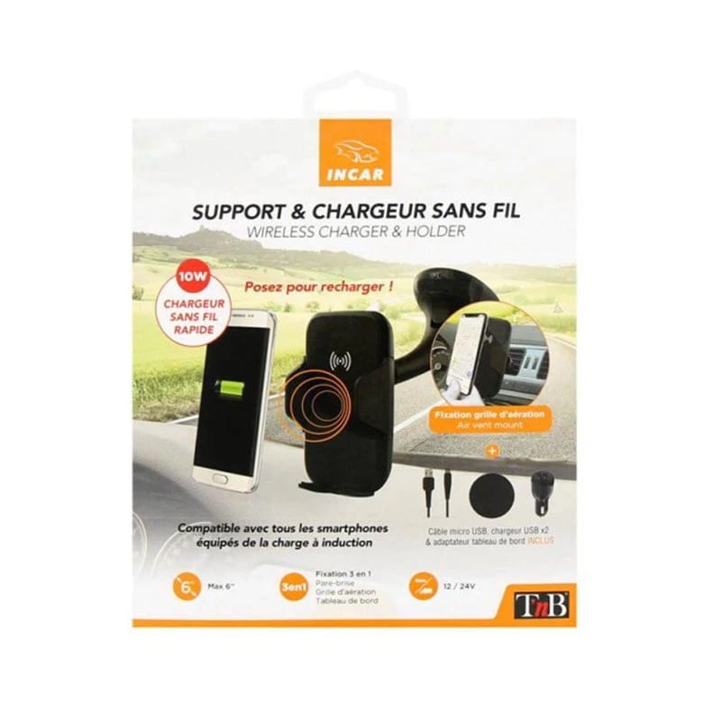 Поставка за телефон за кола TNB, 3 в 1, с безжично зареждане, 6''