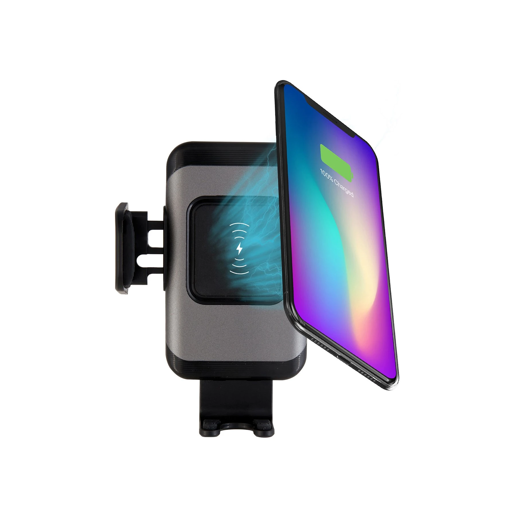Когато телефонът бъде поставен в държача, челюстите автоматично ще се затворят въз основа на безжичното зареждане, за да съответстват на размера на телефона.