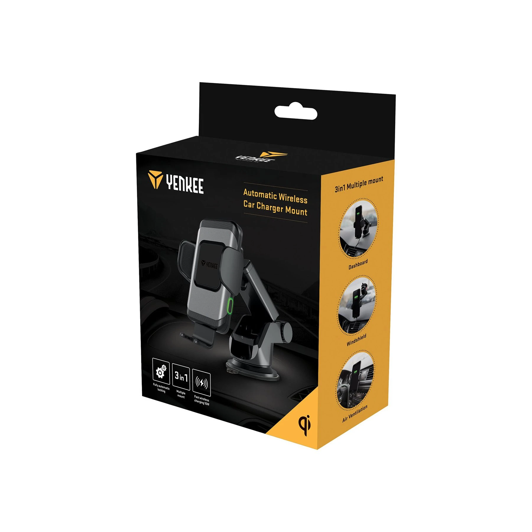Поставка за телефон за кола Yenkee YSM 610, с безжично зарядно, автоматична, черна