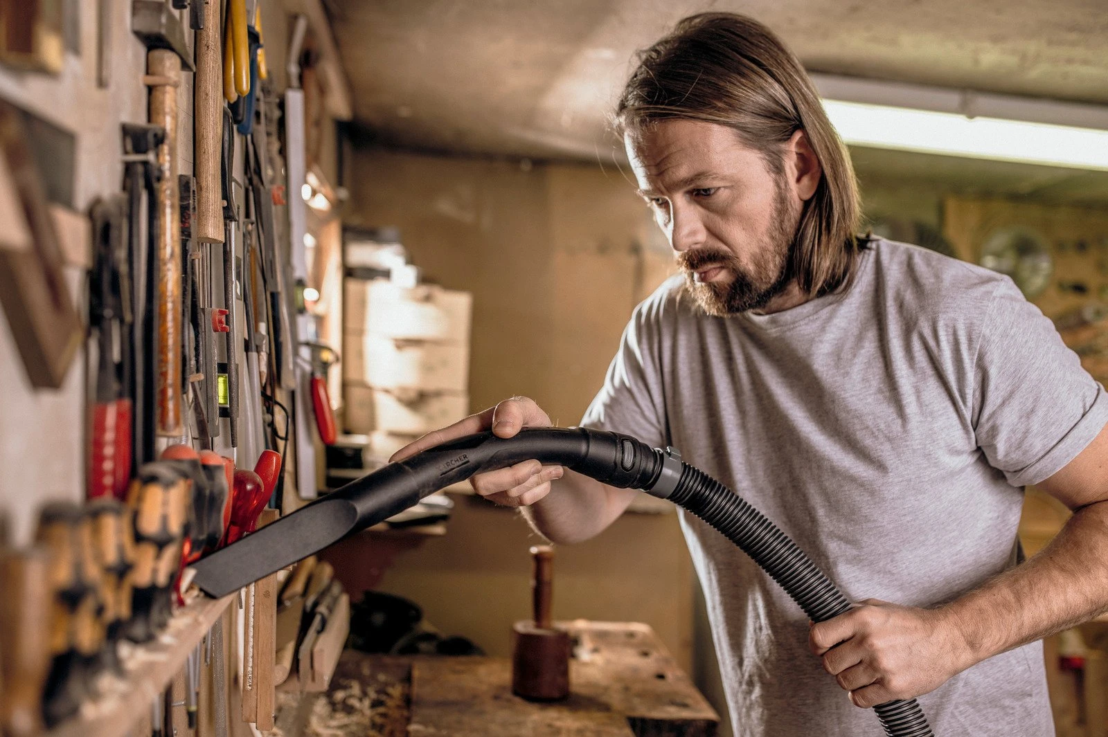 Можете да почистите бързо и лесно мръсотията от рязане, шлайфане или други дърводелски практики.