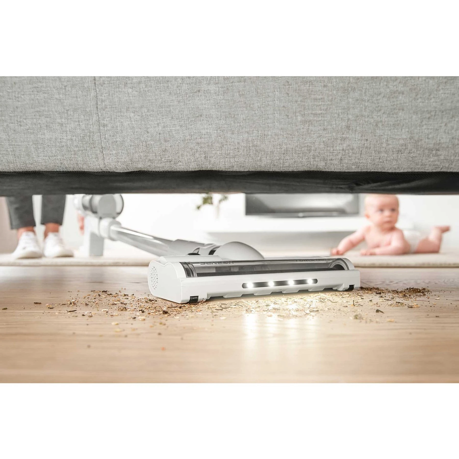 Sencor SVC 7522WH е безжична вертикална прахосмукачка 2 в 1, с подвижна ръчна част. Оборудвана е с 250-ватов дигитален мотор, който гарантира изключителни резултати при почистване на всички видове повърхности.