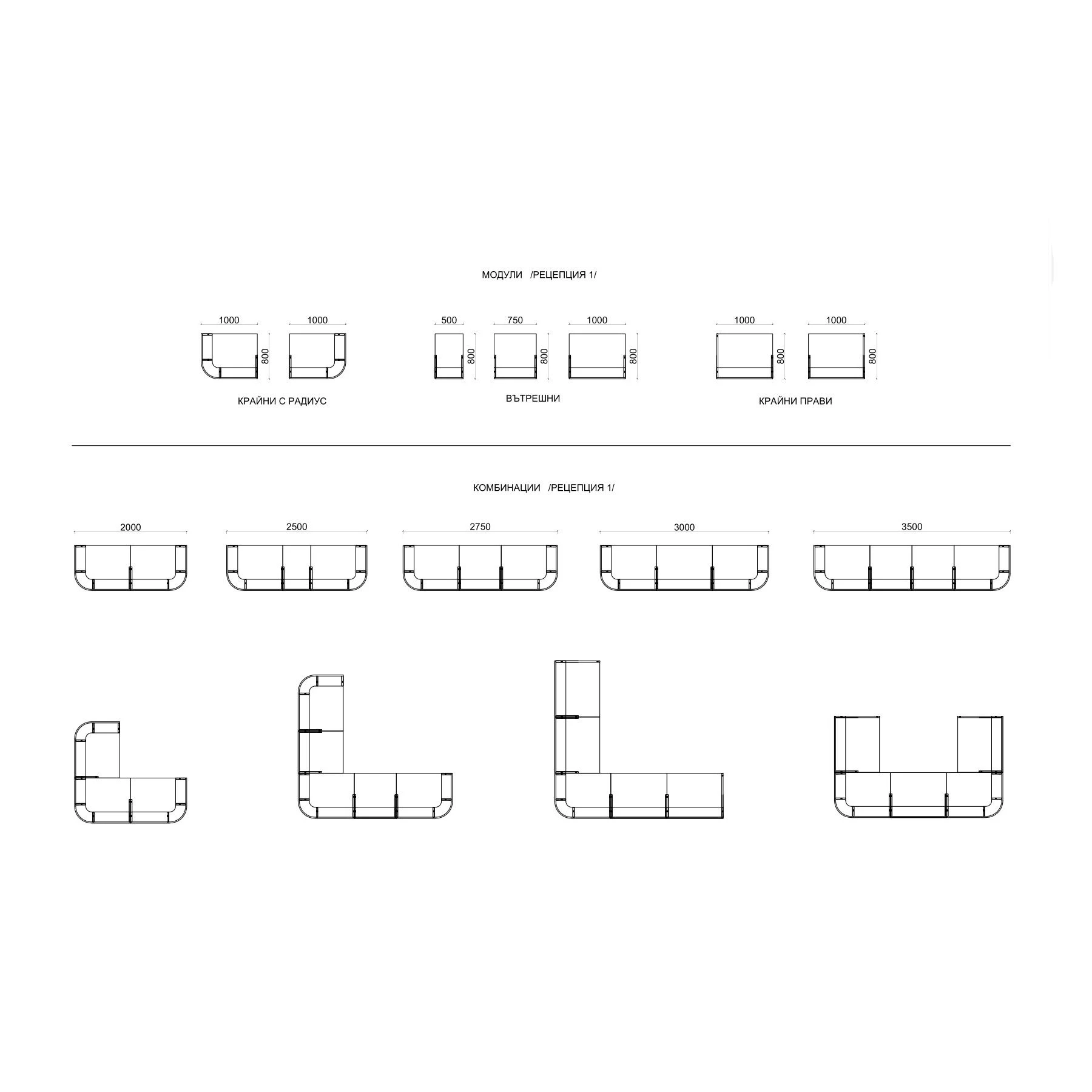Прав външен десен модул за рецепция, изработен от ПДЧ с меламиново покритие и HPL детайли.