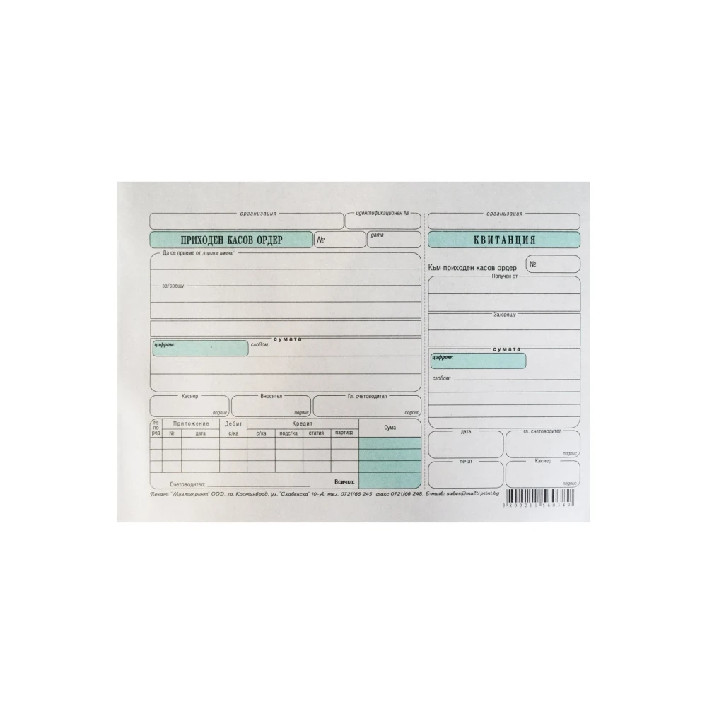 Приходен касов ордер, 100 листа