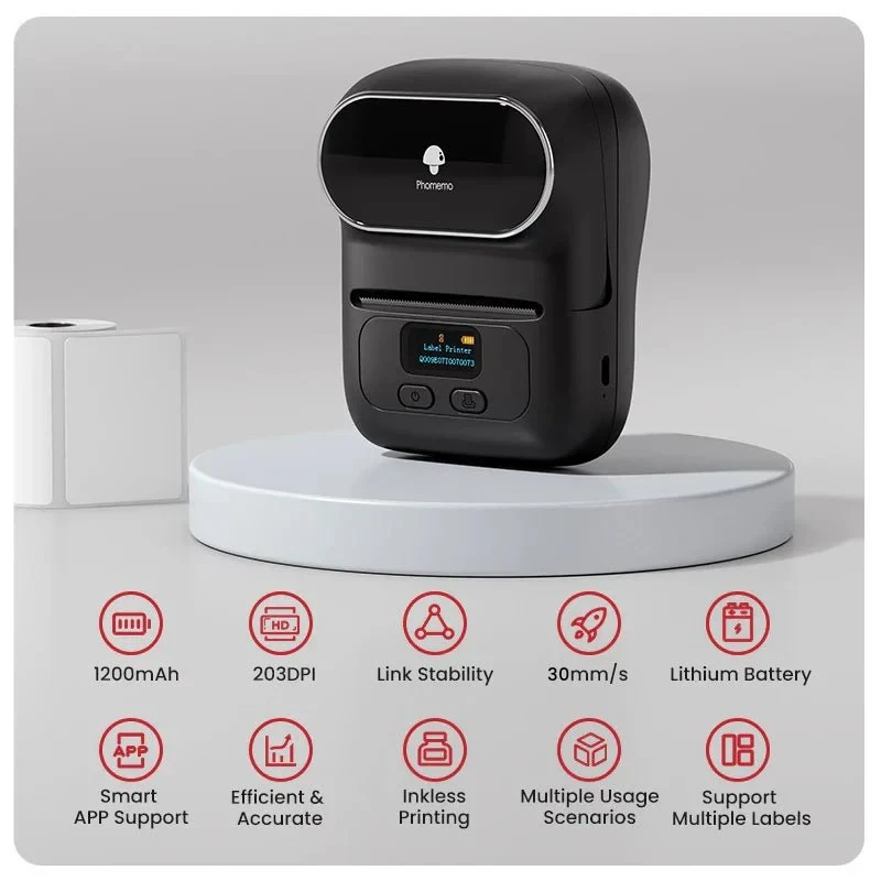 Компактният и интелигентен Phomemo M110 е преносим термичен принтер, създаден специално за малкия бизнес, онлайн търговци и креативни предприемачи. Благодарение на лесната Bluetooth връзка и безмастилната технология, той ви позволява да създавате и отпечатвате професионални етикети, баркодове и ценови табели навсякъде и по всяко време.