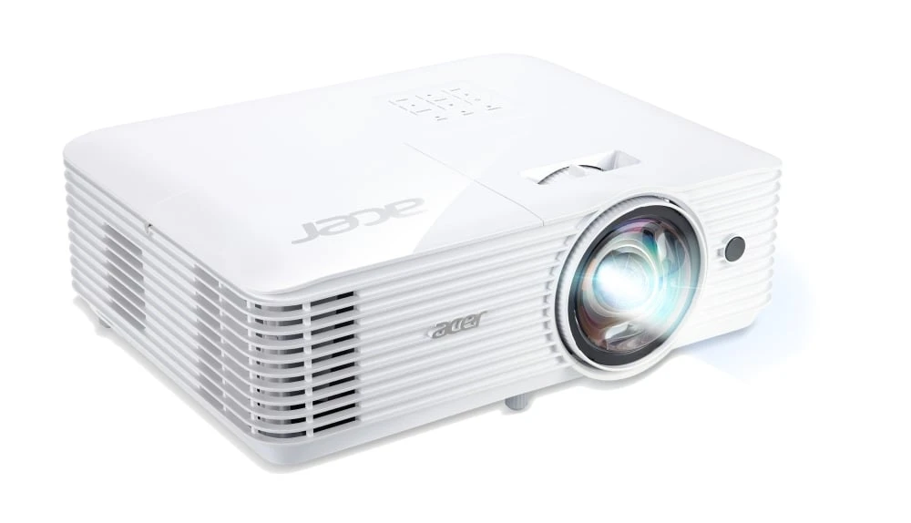 Acer S1286H е късофокусен DLP проектор с резолюция 1024 x 768 и яркост от 3500 лумена, идеален за презентации и прожекции в малки пространства.