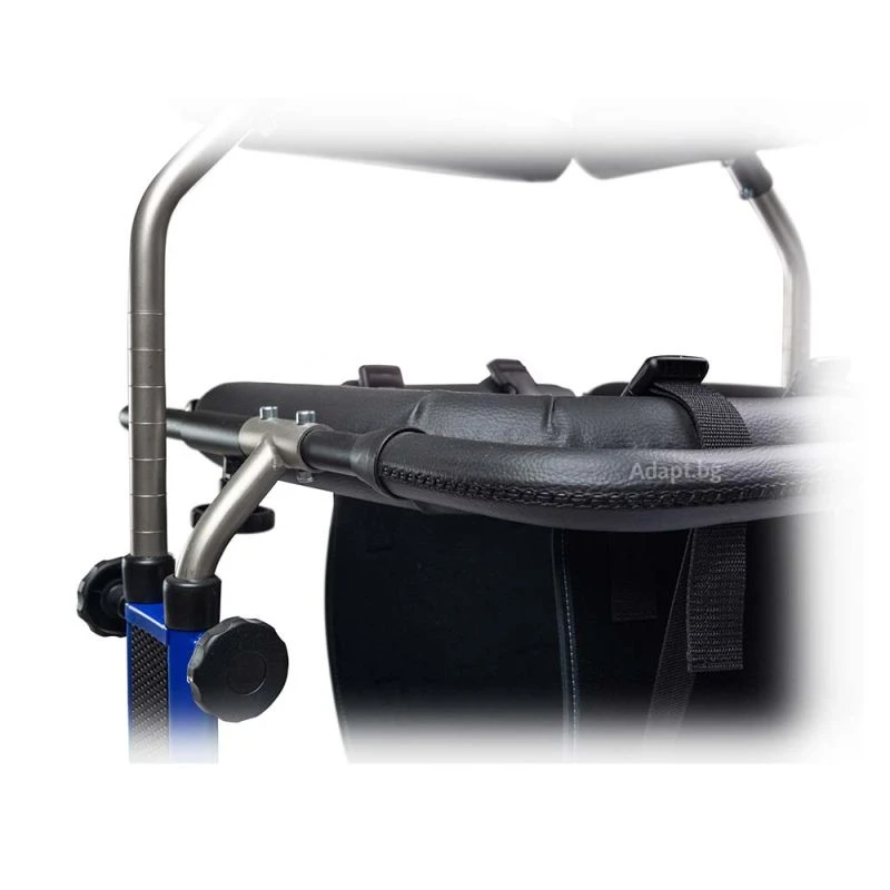 Стандартно оборудване: - Разделител за краката; - Колела със спирачки, които регулират бързината на движение; - Опора за таза с тапицерия (регулираща се); - Опора за гърдите с тапицерия (регулираща се); - Колан за таза за допълнителна опора; - Ръкохватка за ръцете.