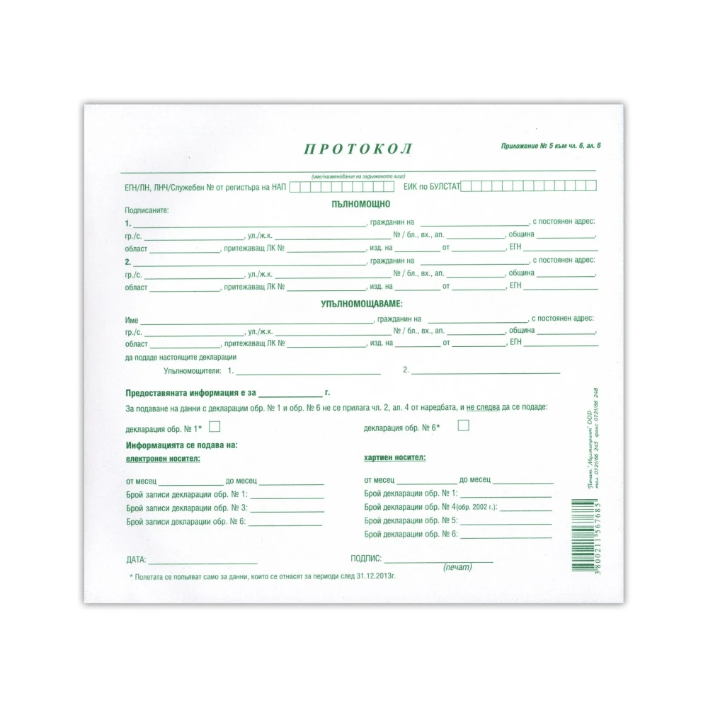 Протокол 2/3, A4, химизиран