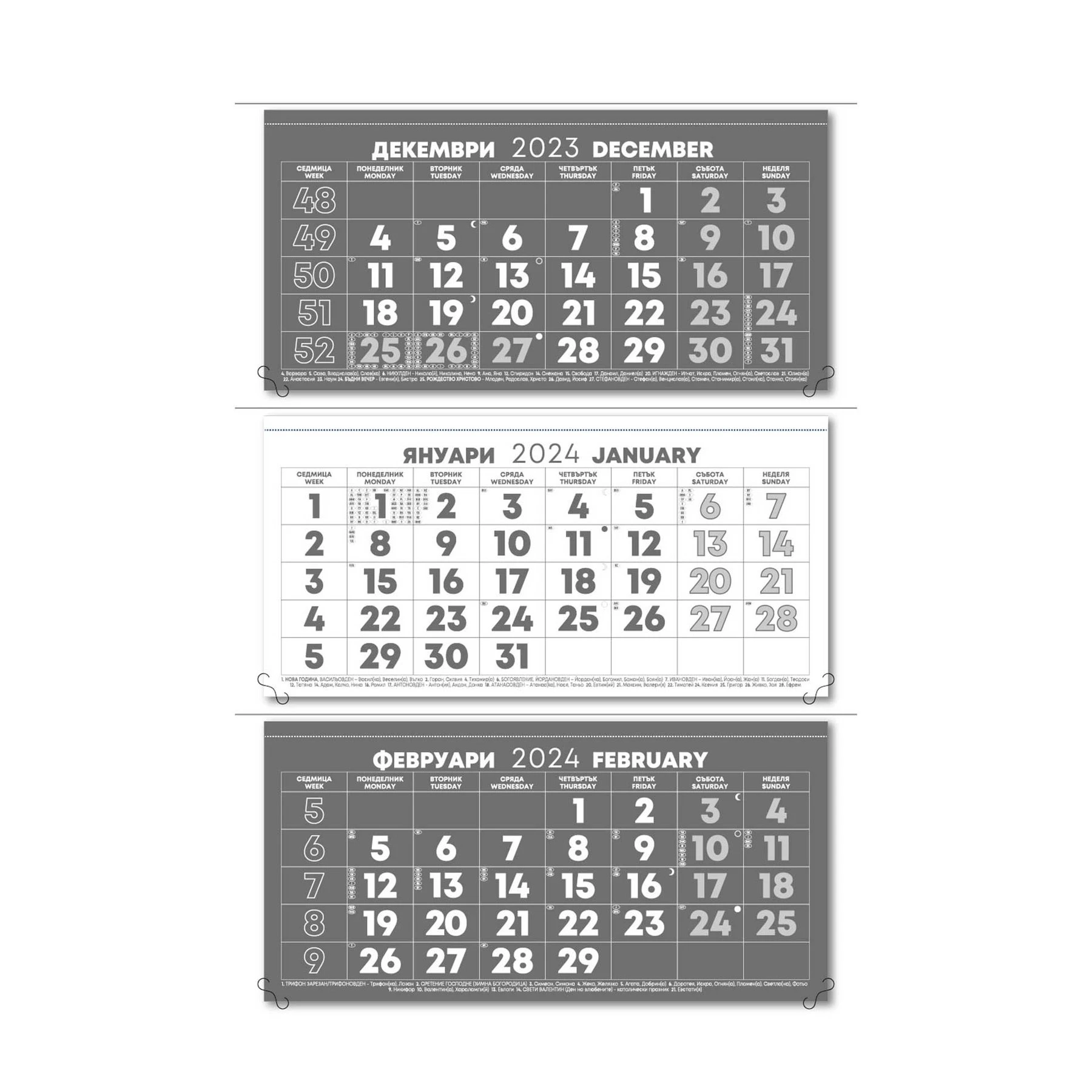 Работен календар Пол, с 3 тела, без глава, сив
