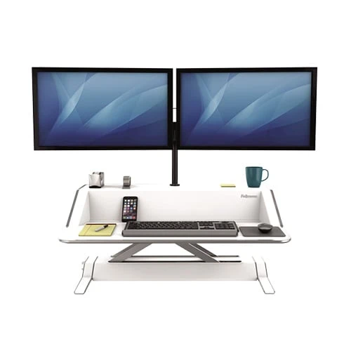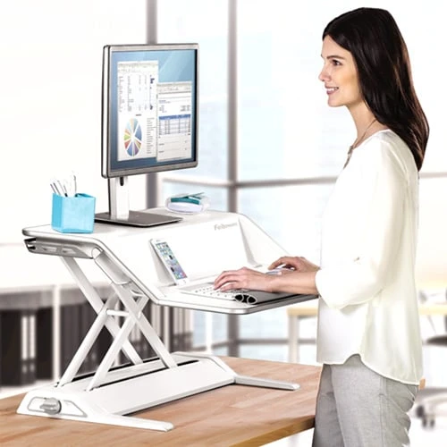 Работната подвижна станция Sit-Stand от следващо поколение на Fellowes добавя движение към вашия ден, за да ви помогне да работите и да се чувствате по-добре – без усилия!