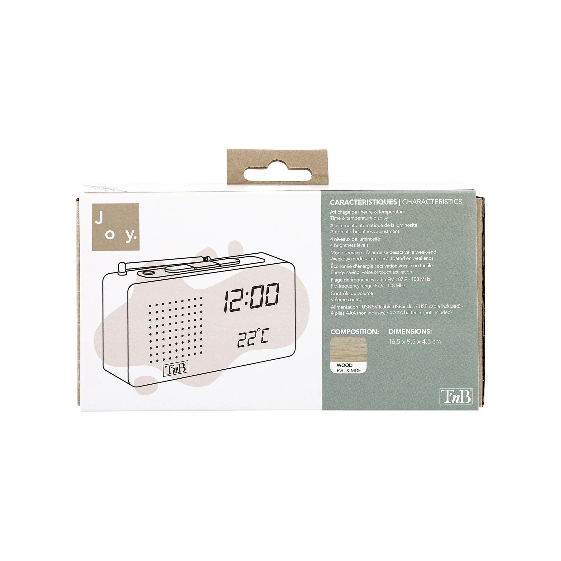 Радио часовник TNB Joy Woody, електронен, LED