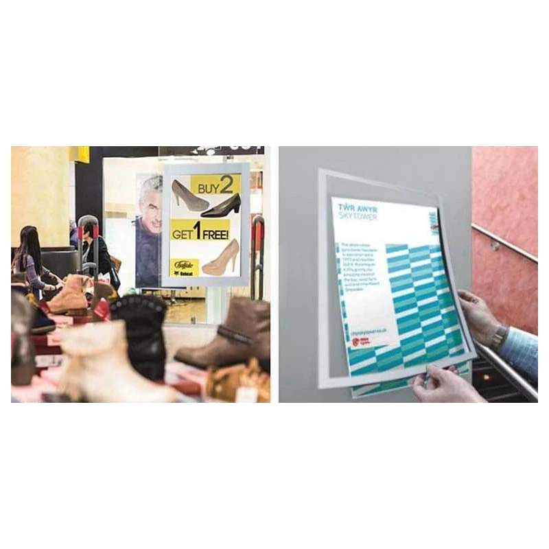 Гланцово антирефлексно фолио държи разпечатката с магнитни ленти, прикрепени към нея и към рамката.