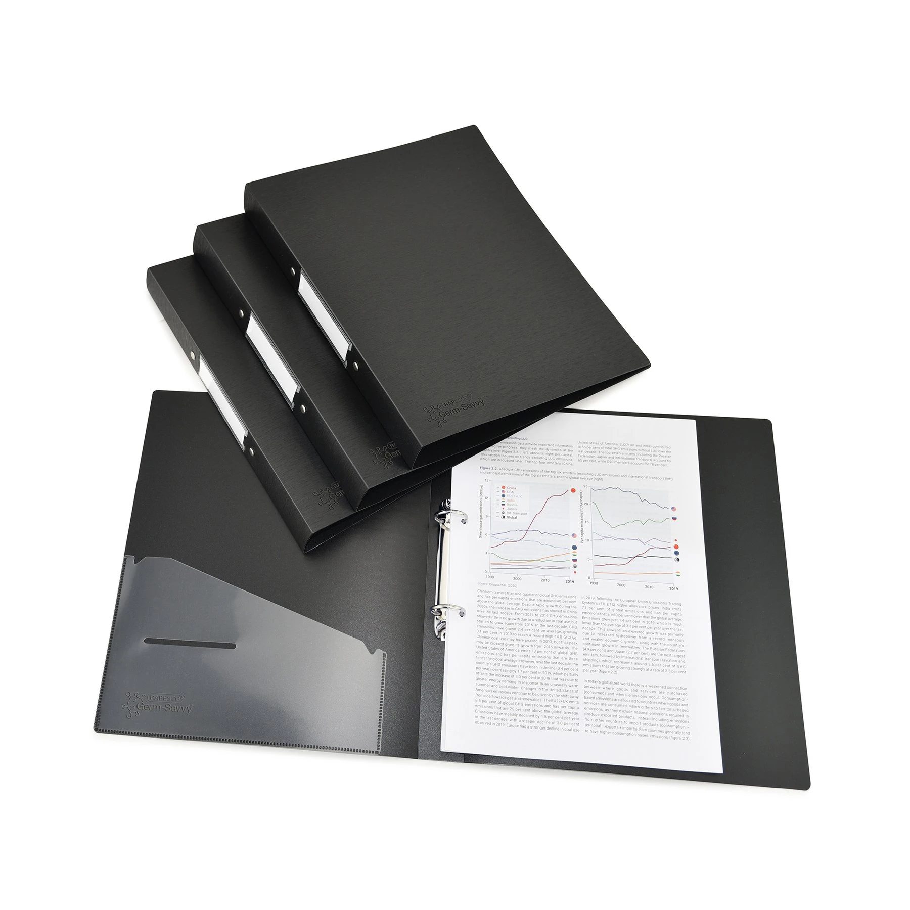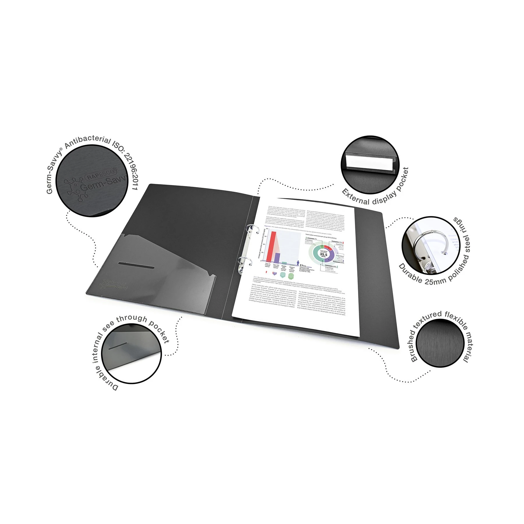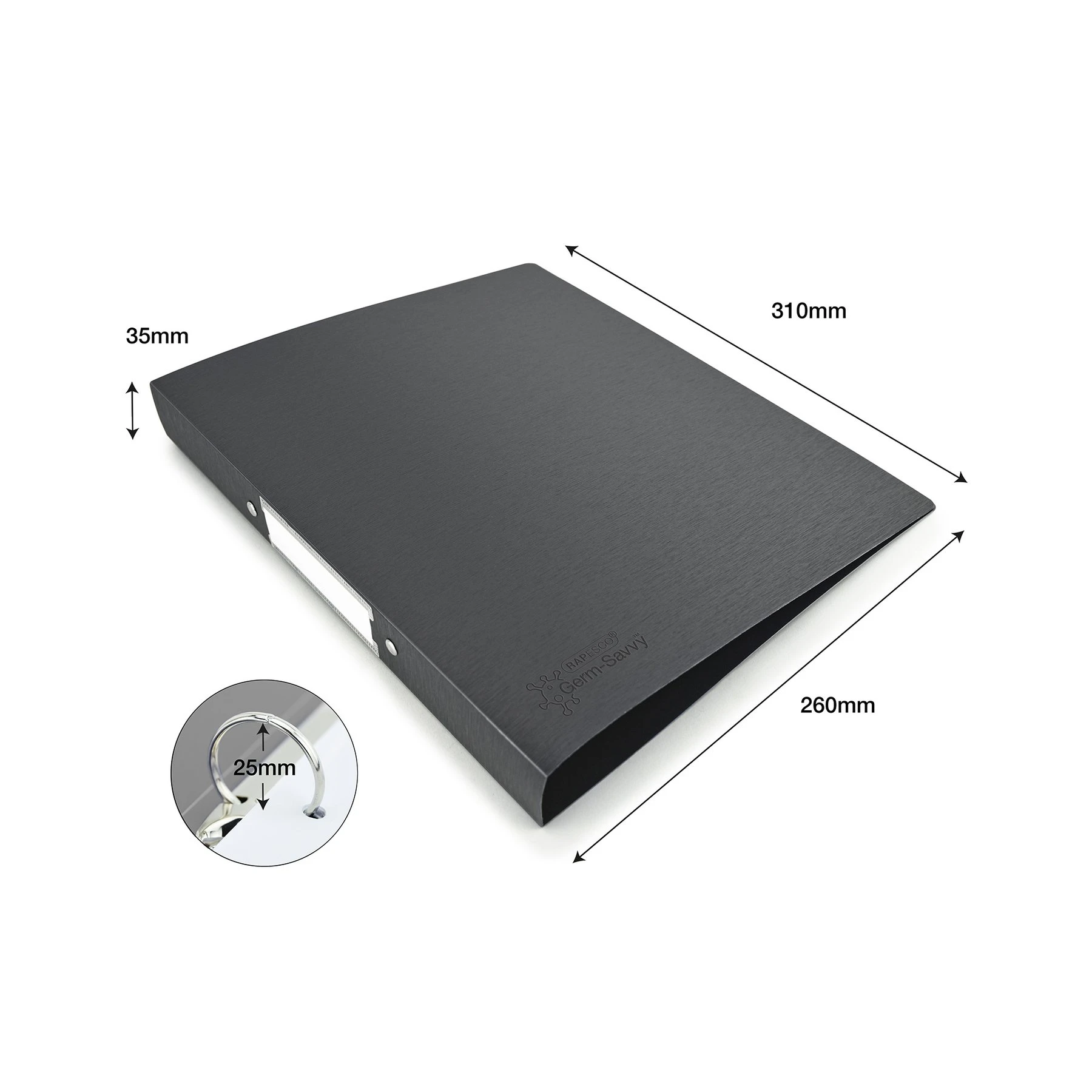 Rapesco Папка Germ-Savvy, А4, PP, с 2 ринга, 35 mm, черна