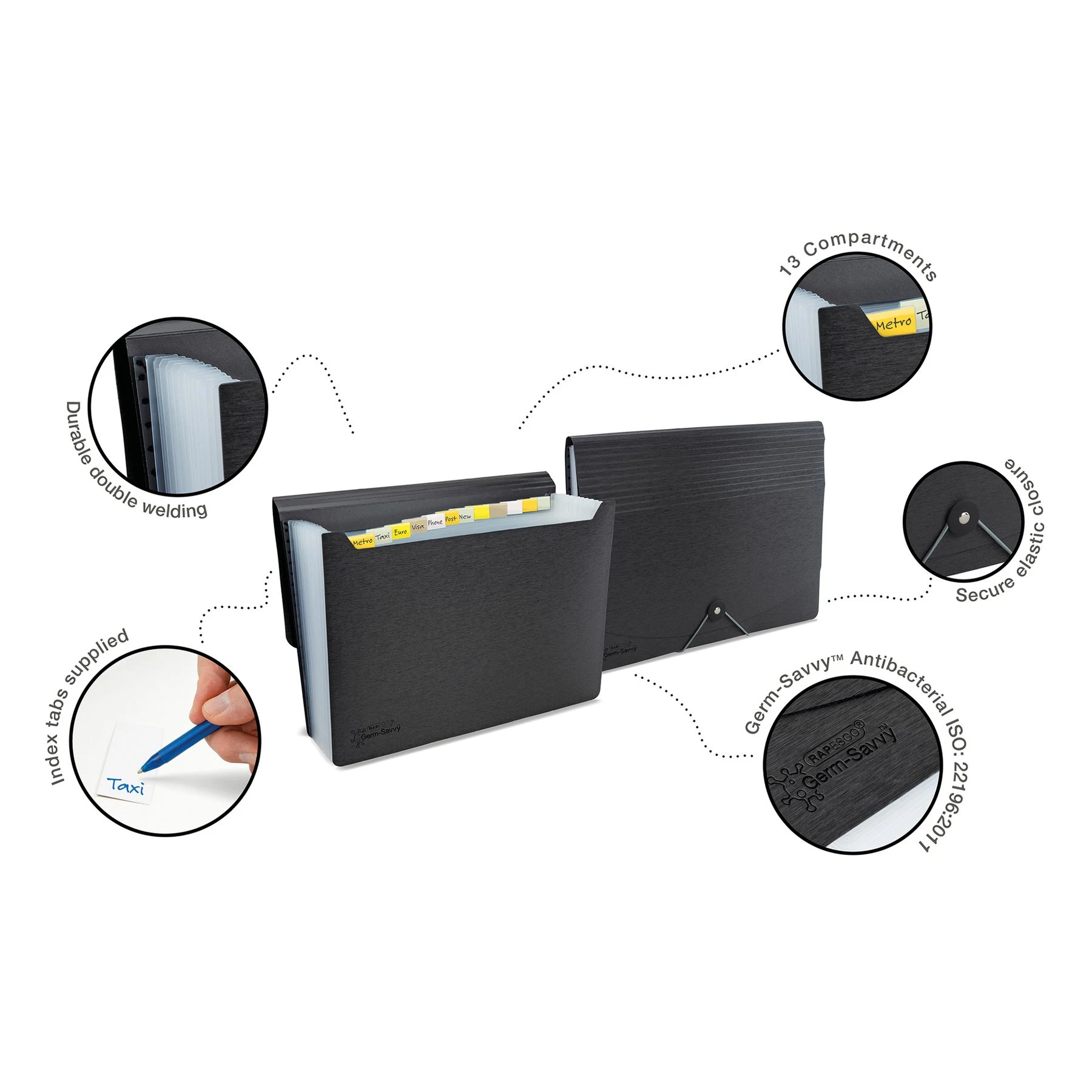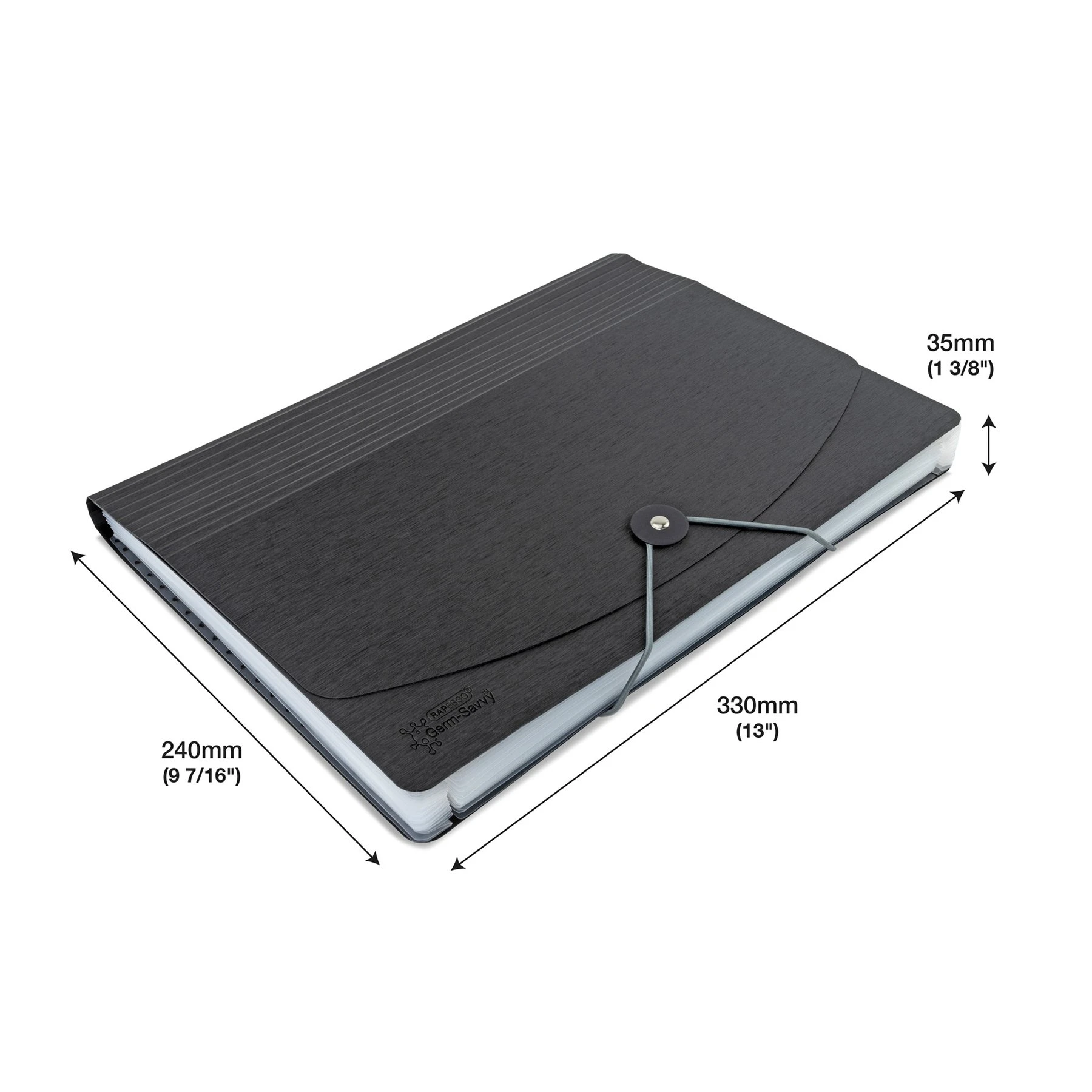 Rapesco Папка Germ-Savvy, тип хармоника, с ластик и 13 отделения, черна