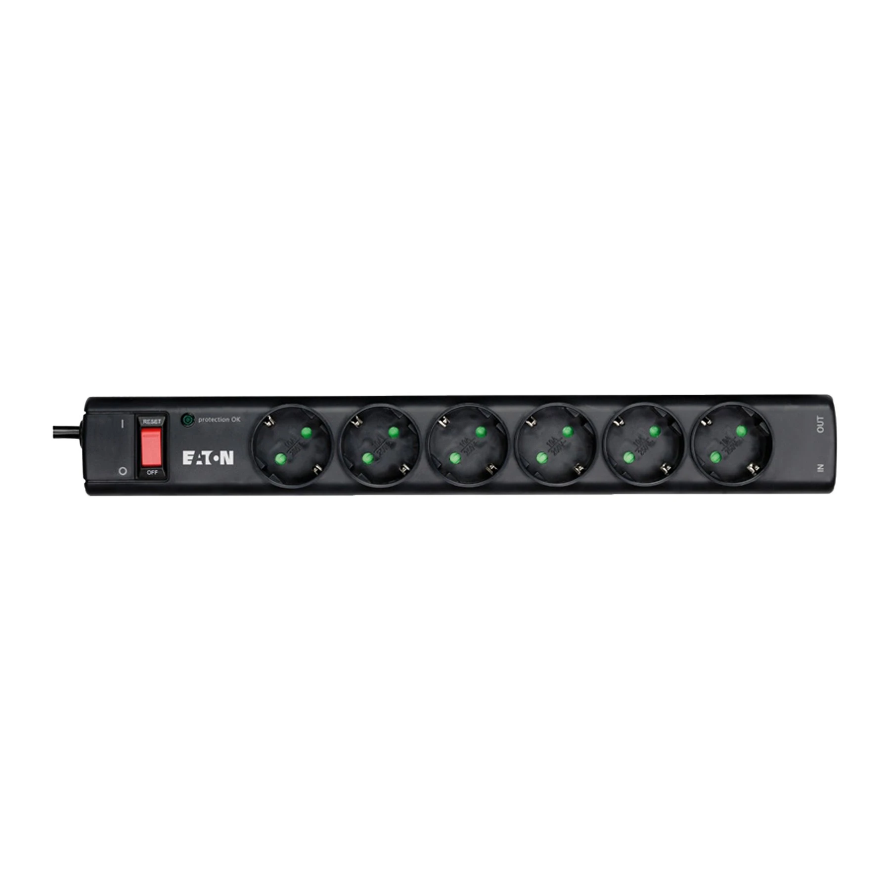 Разклонител Eaton Protection Strip, с 6 гнезда, максимален ток 10 A, 2500 W, черен