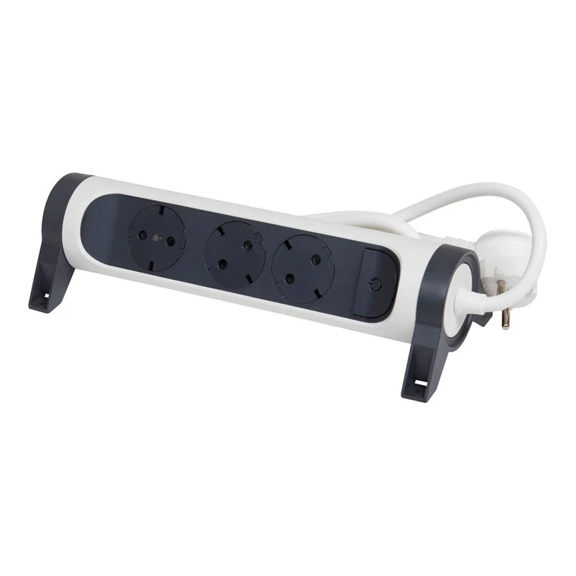 Разклонител Legrand Premium, 3 гнезда, 3 m кабел, максимален ток 16 A, 3680 W, сиво-бял