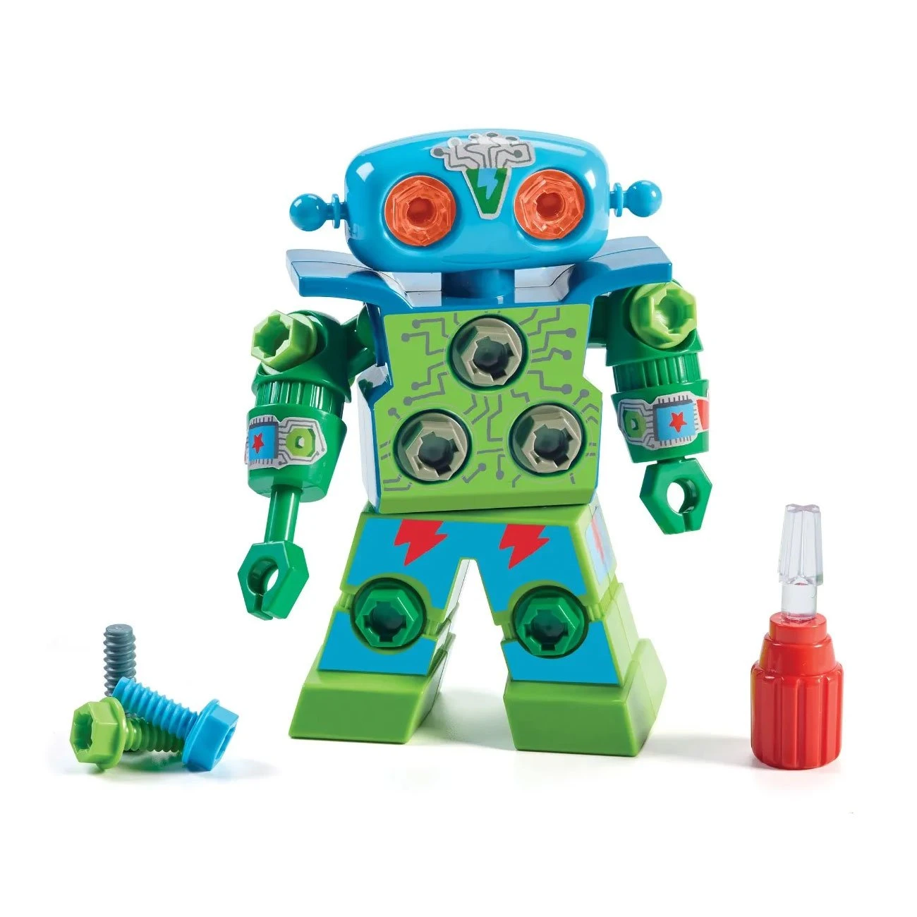 Включва 15 разноцветни болта, отвертка и декоративни стикери.