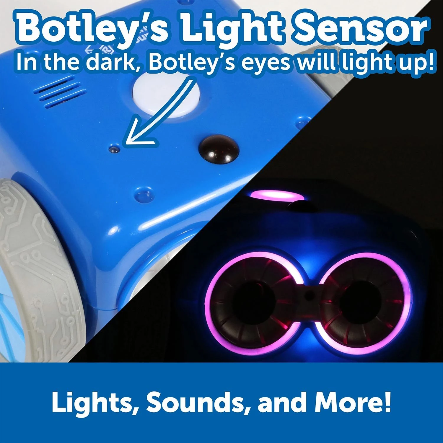 Роботът свети в шест цвята, реагира на звук, следва предварително начертани линии и изпълнява тайни „трикове“, които децата откриват чрез експеримент и дедукция. В комплекта са включени 40 цветни кодови карти, два подвижни „рога“, топче и трафарет, с които могат да се изграждат персонализирани трасета.