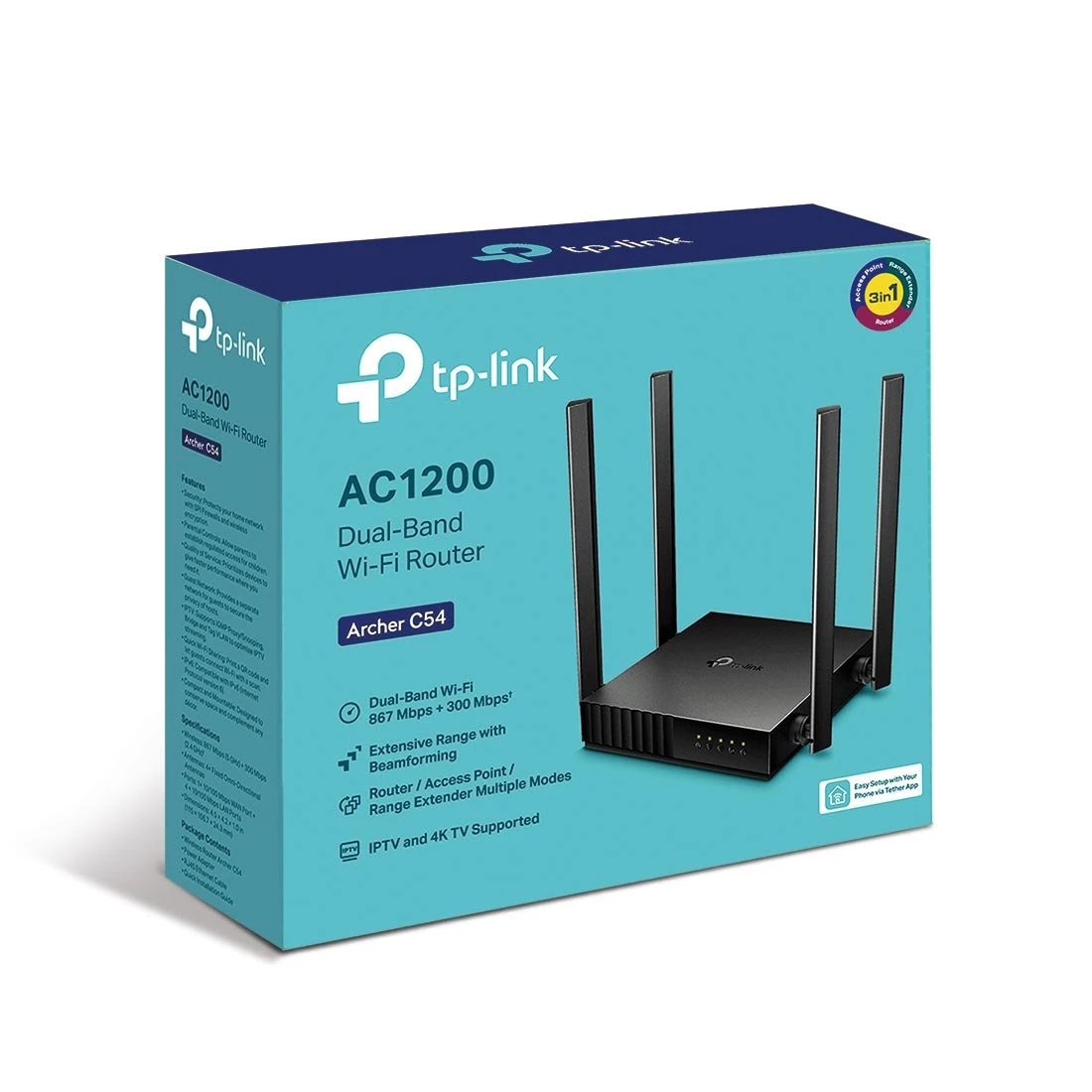Archer C54 поддържа три режима на работа — рутер, точка за достъп и удължител на обхват — което му придава гъвкавост за различни мрежови сценарии.
