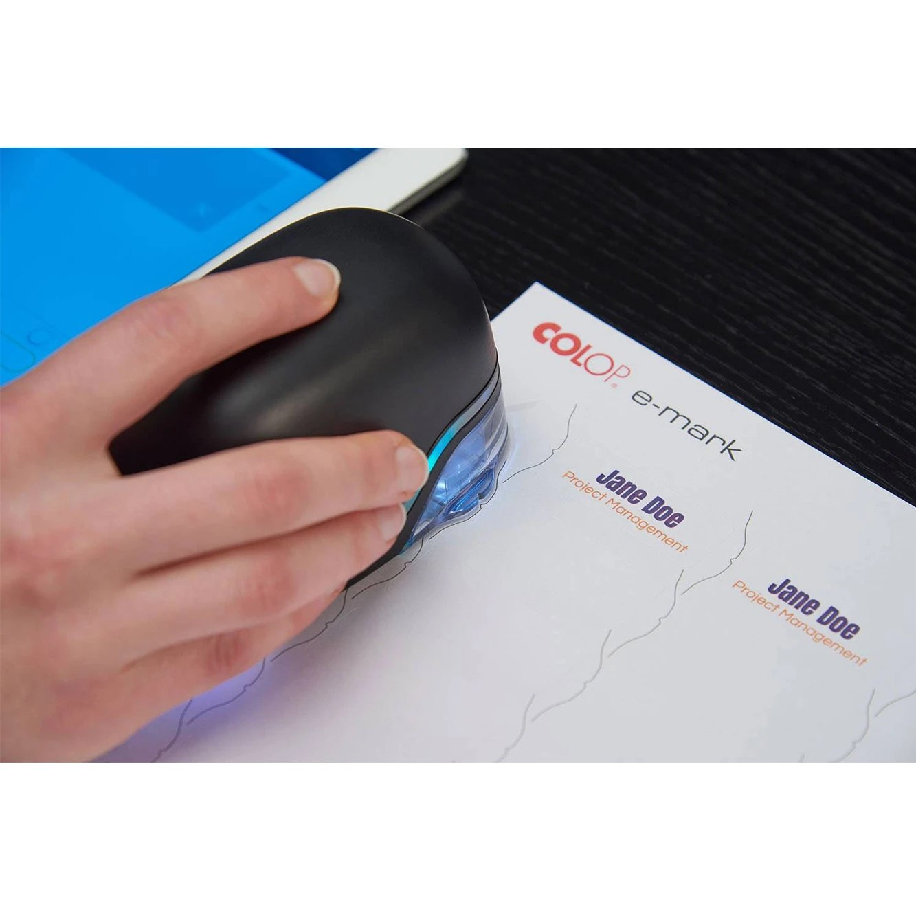 Етикети за COLOP E-MARK с предварително обозначено място за печат. Етикетите могат да се поставят върху всички повърхности, включително метал, стъкло и пластмаса. Подходящи за малки серийни производства и лимитирани серии.