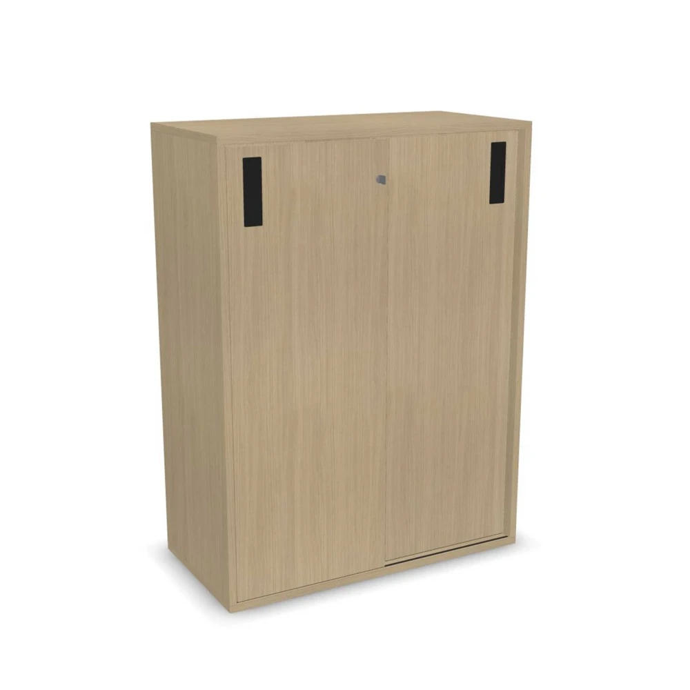 Шкаф Narbutas Choice, с плъзгащи се врати, 800 x 400 x 1075 mm, ПДЧ 18 mm, меламин избелен дъб, меламин избелен дъб, черна дръжка