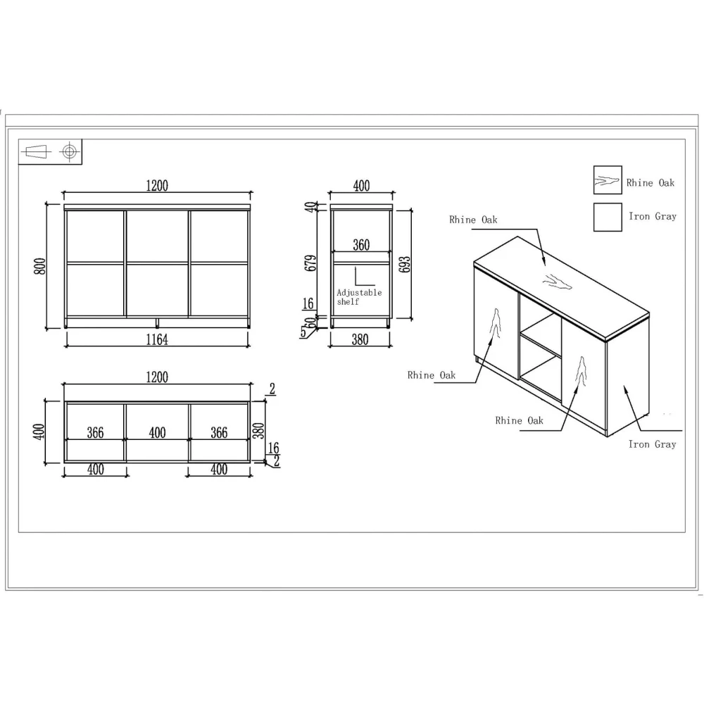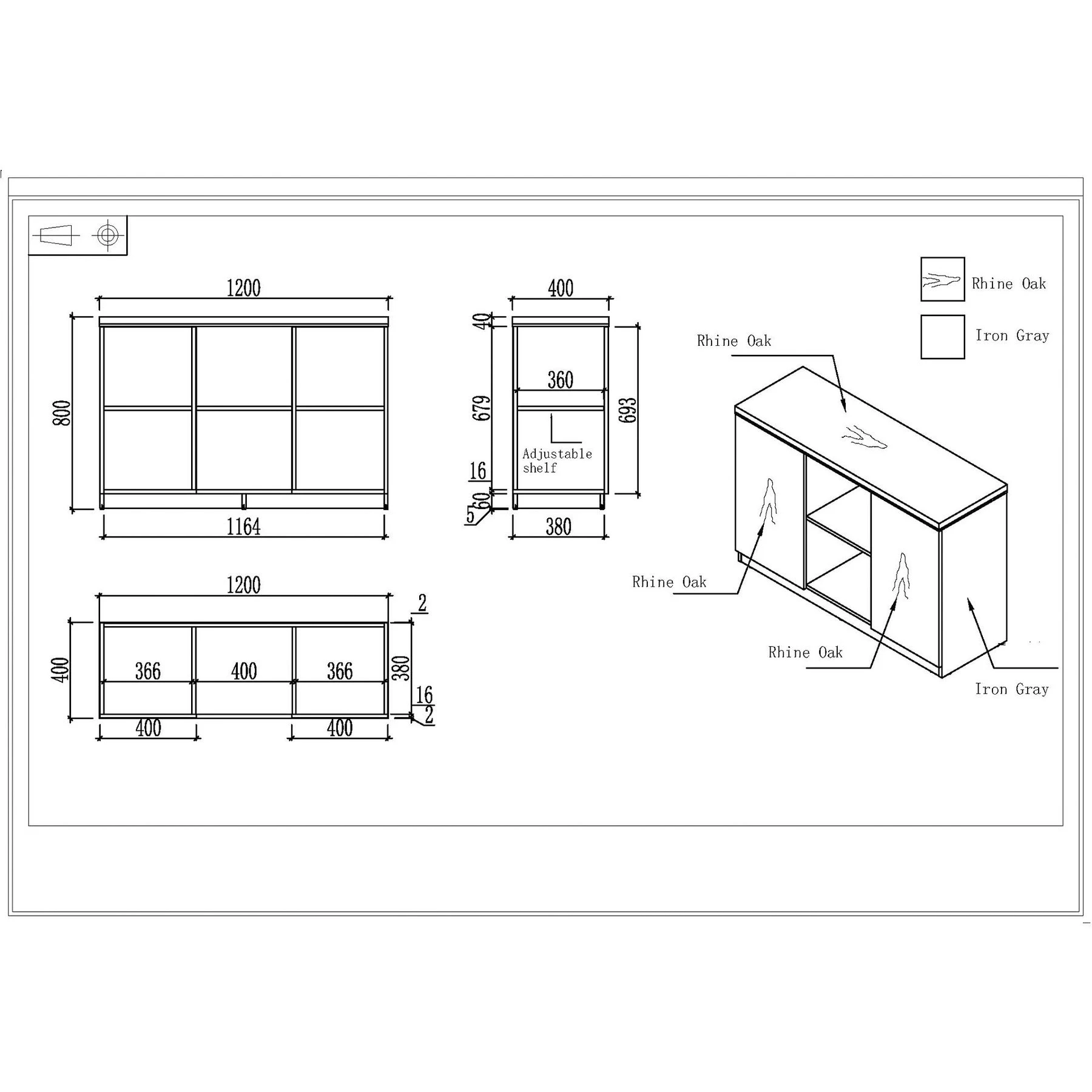 Шкаф RFG Chicago, 1200 х 400 х 800 mm, ПДЧ, дъб Рейн и тъмносиво