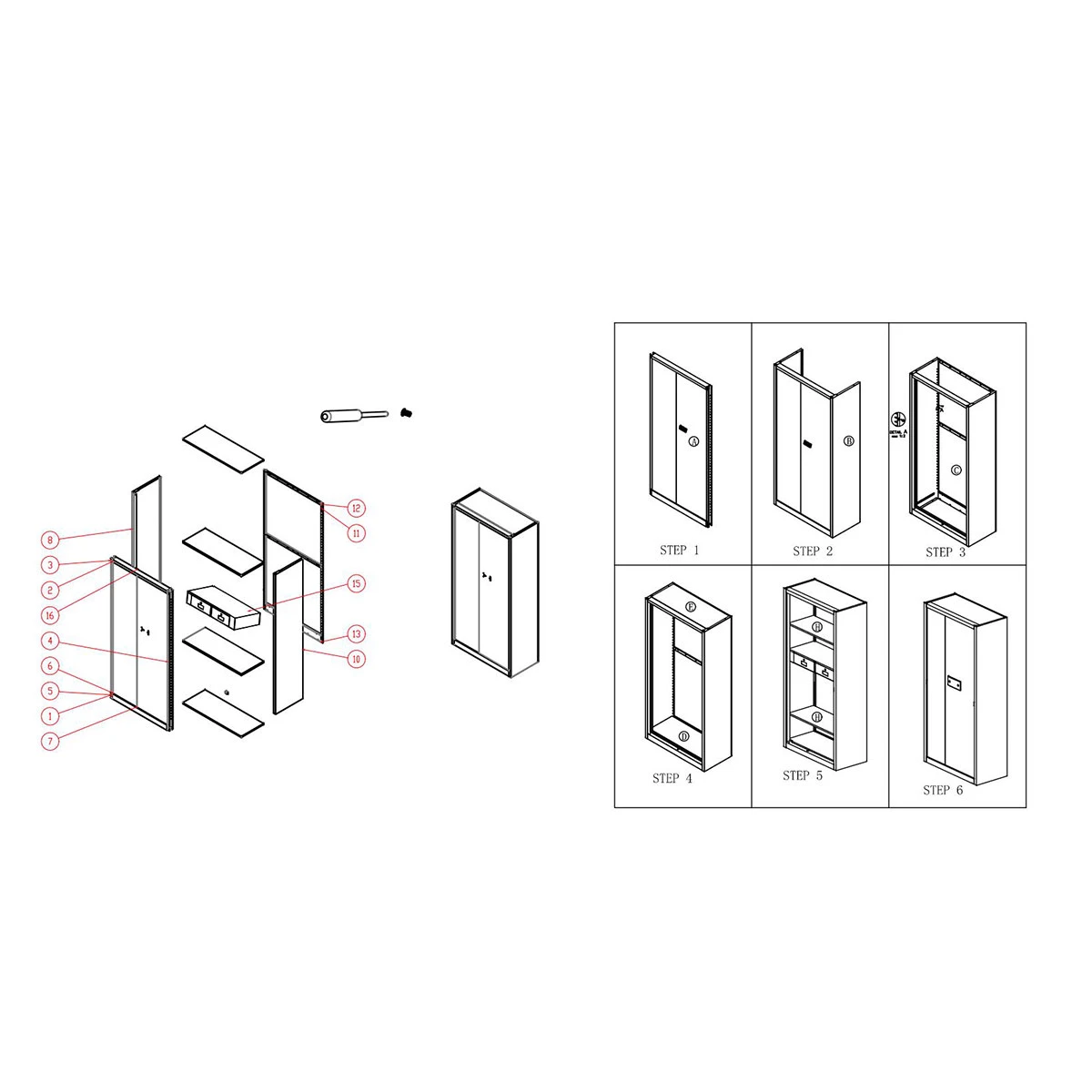 Шкаф RFG, метален, с електронно заключване, 90 х 42 х 185 cm, графит и бяло