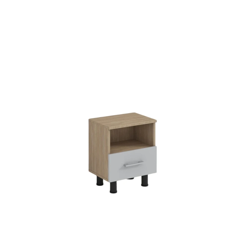 Включва едно чекмедже с мебелна дръжка и ниша над него, 4 мебелни крака.