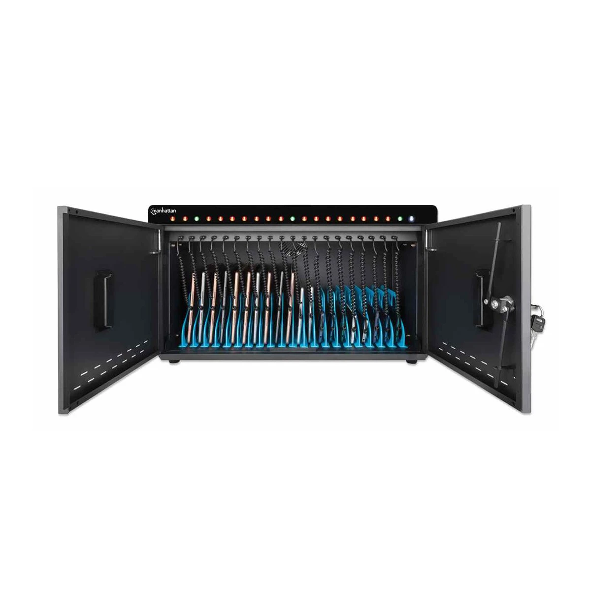 Шкаф за зареждане на смартфони Manhattan, таблети и USB устройства, 360W, до 20 броя
