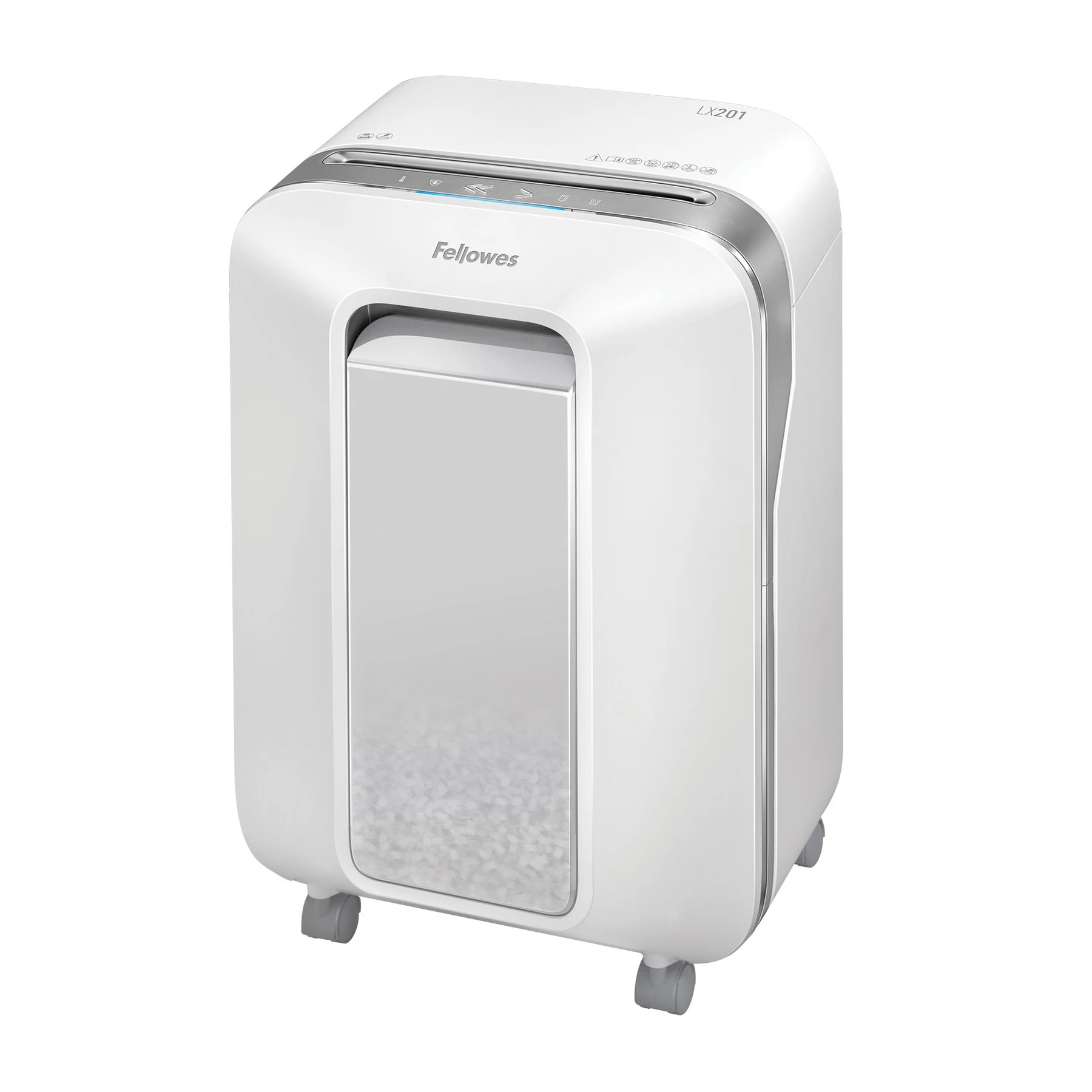 Шредер за унищожаване на документи Fellowes Powershred LX201, Microcut, 22 L, бял, P-5, време за работа 10 мин, Micro-Cut