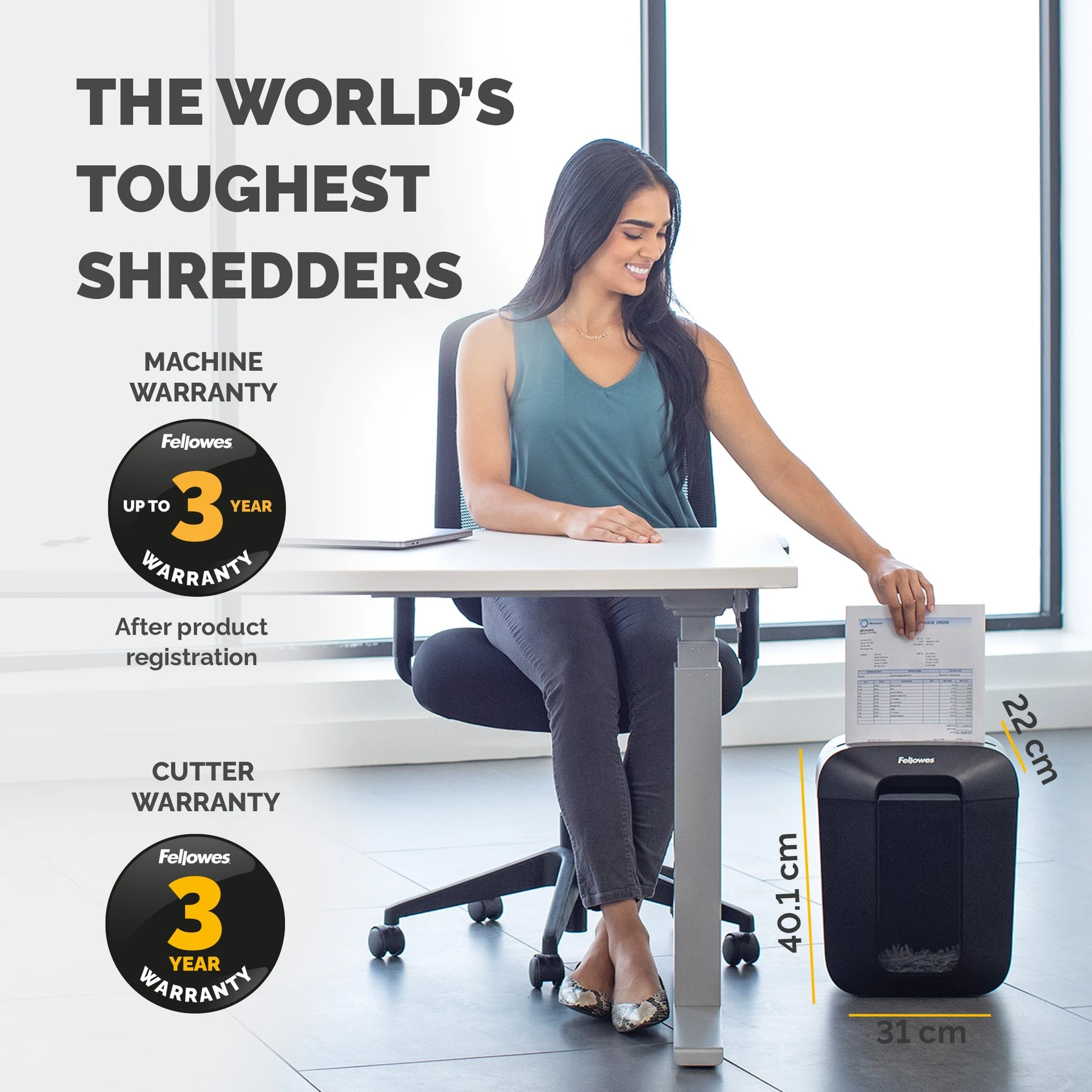 Шредер за унищожаване на документи Fellowes Powershred LX45, Cross-Cut, черен, P-4, обем на коша 17 L, време за работа 6 мин, ниво на шум 70 dB