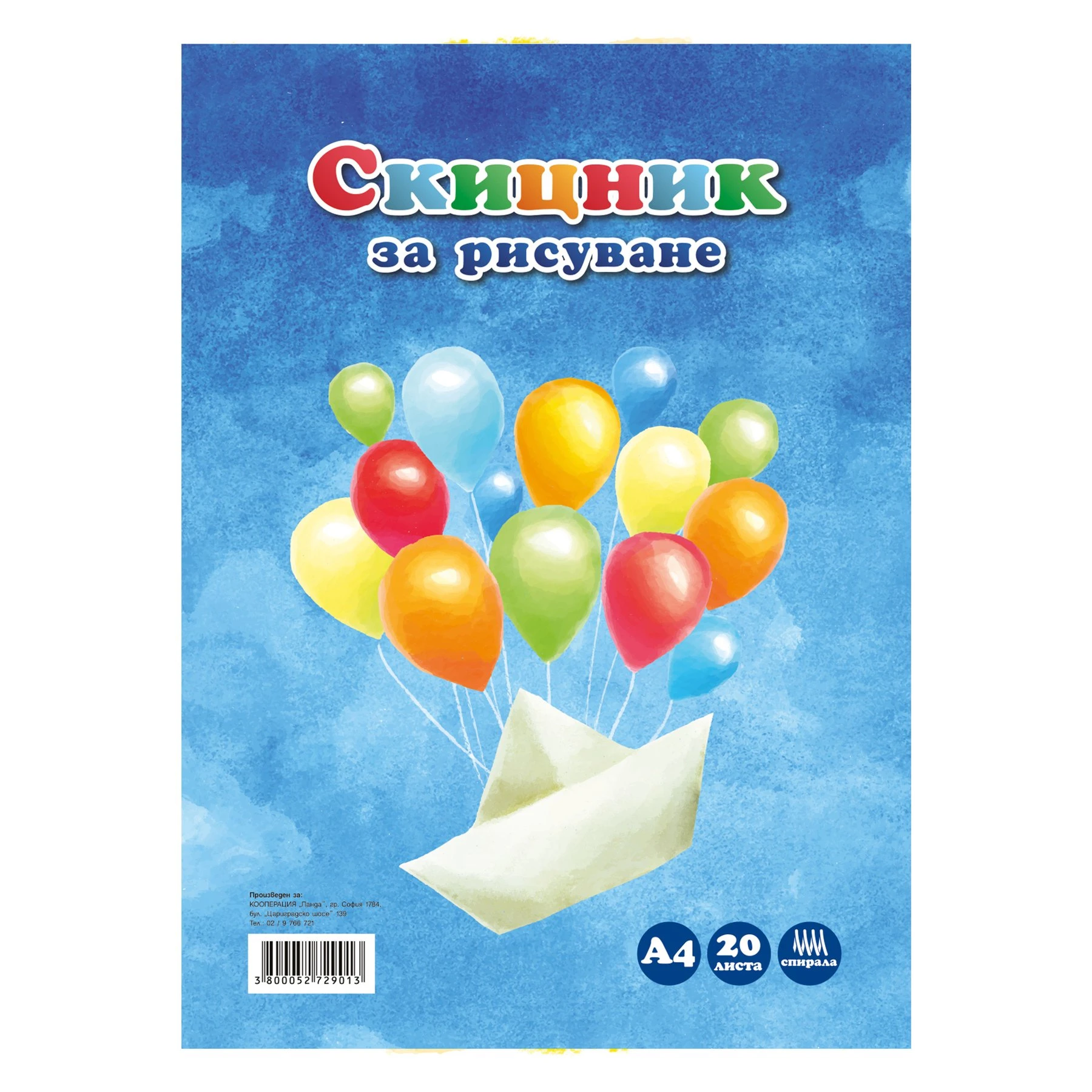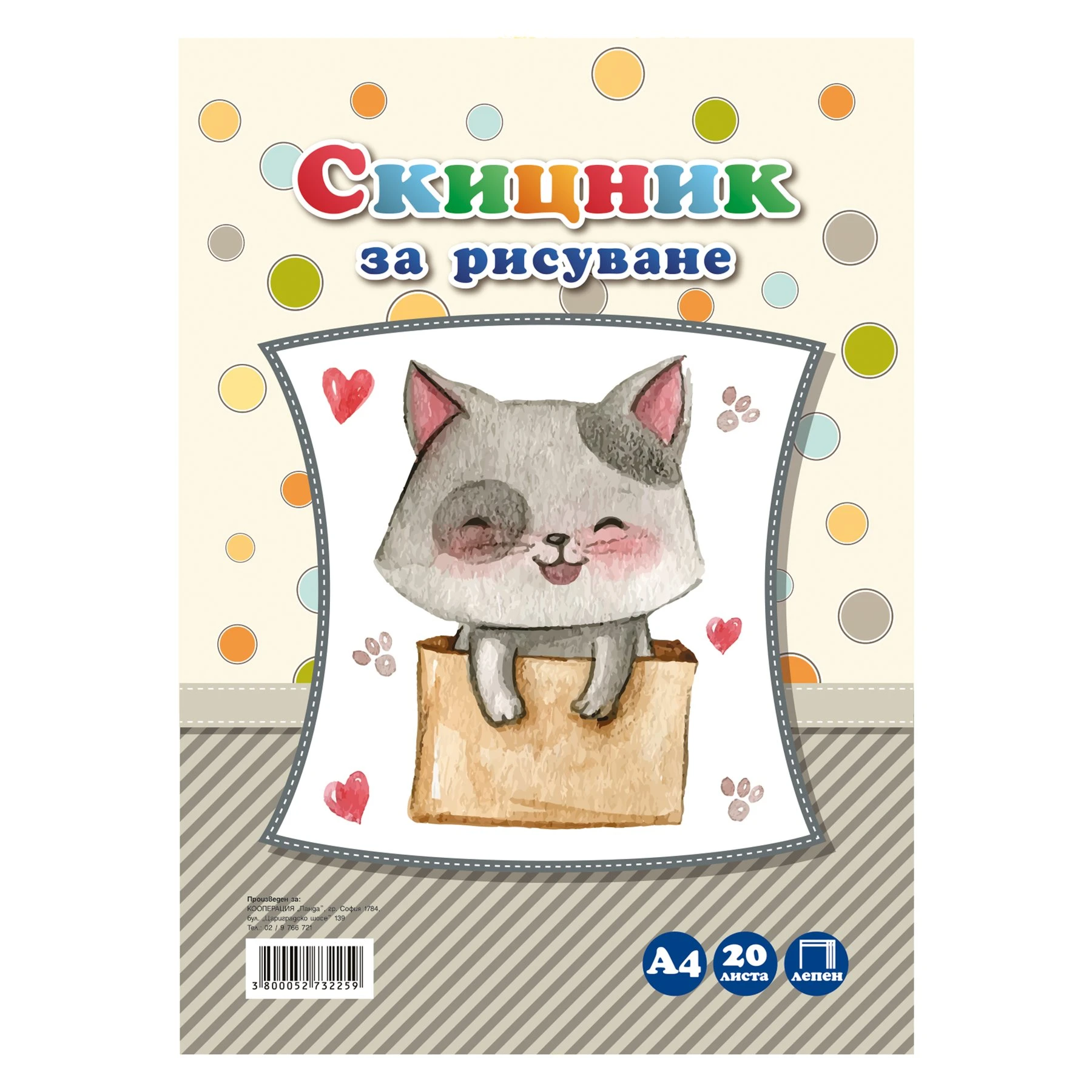 Скицник за рисуване, A4, 70 g/m2, обемна хартия, подлепен, 20 листа