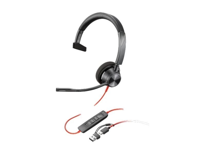 Слушалки HP Poly Blackwire 3310, с кабел 2.15 m, с микрофон, USB Type-C/Type-A адаптер, USB Type-C/USB Type-A, 118 dB