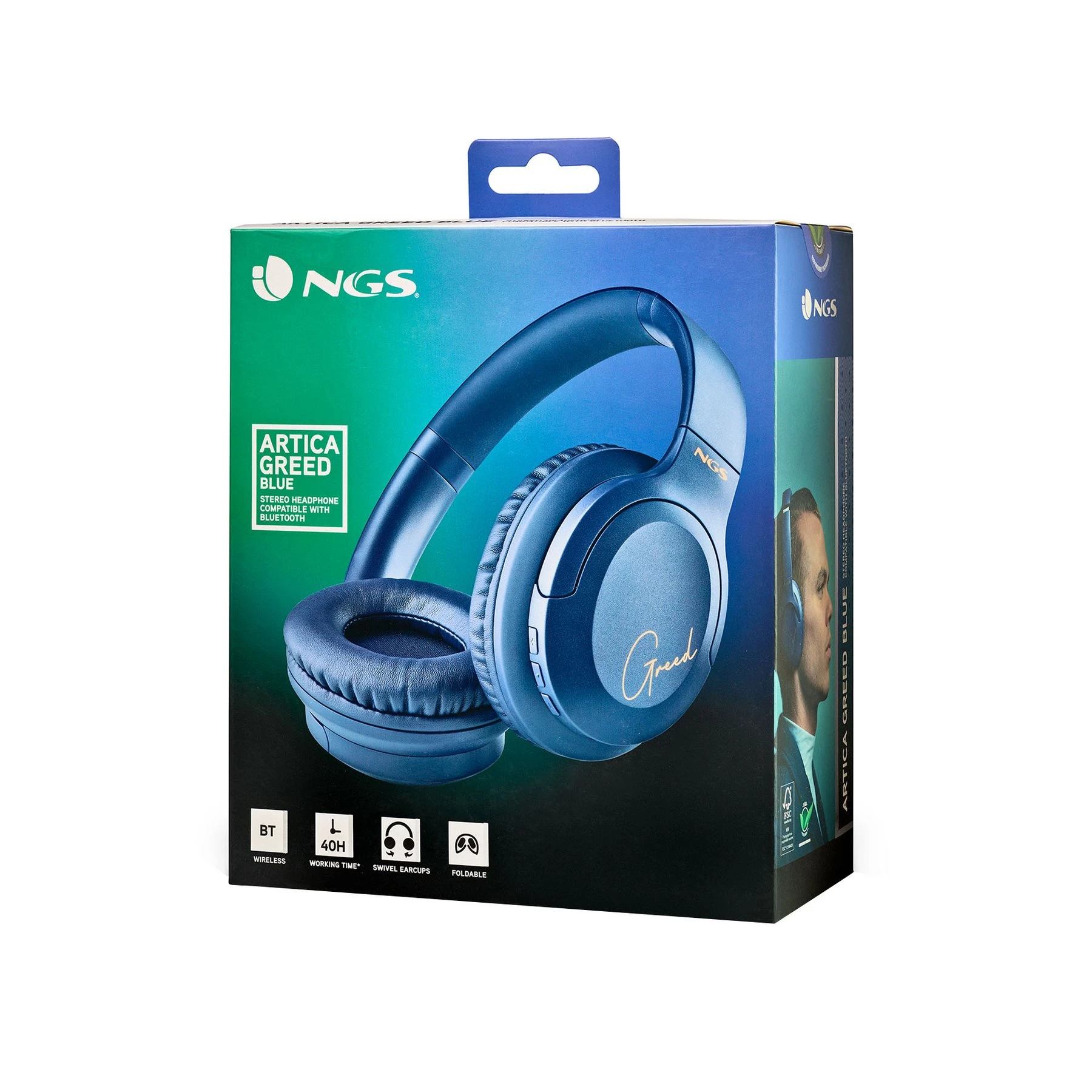 Слушалки NGS Artica Greed, с Bluetooth, USB Type-C, 105 dB, сини