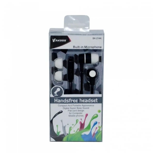 Слушалки Vakoss, с тапи, за поставяне в ушите, с микрофон, с плосък 1 m кабел, 3.5 mm жак, 98 dB, черни